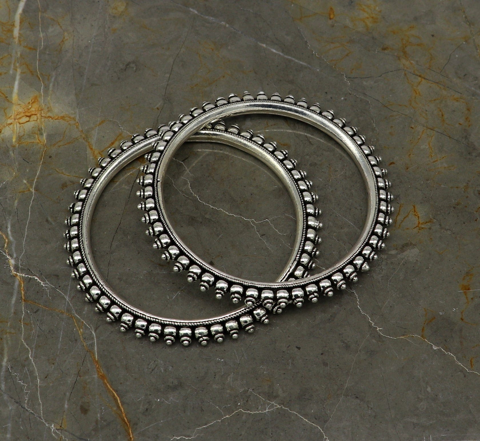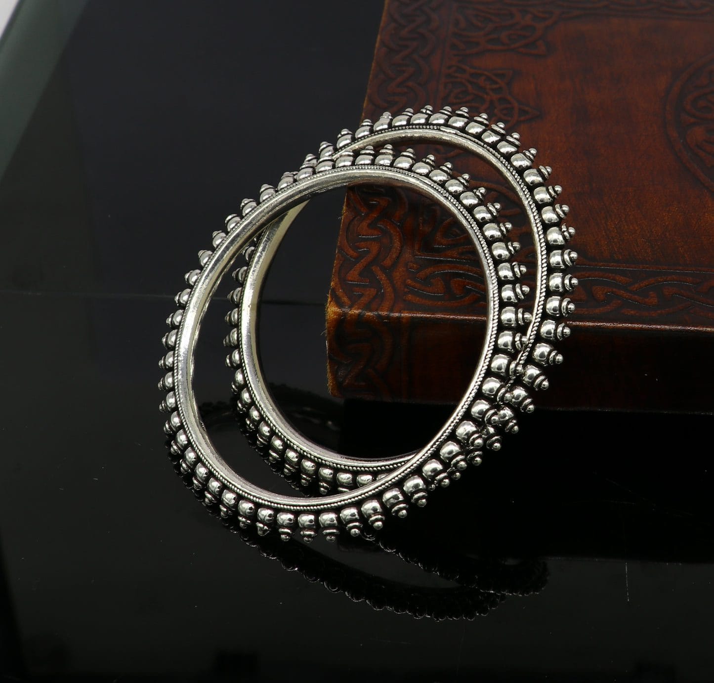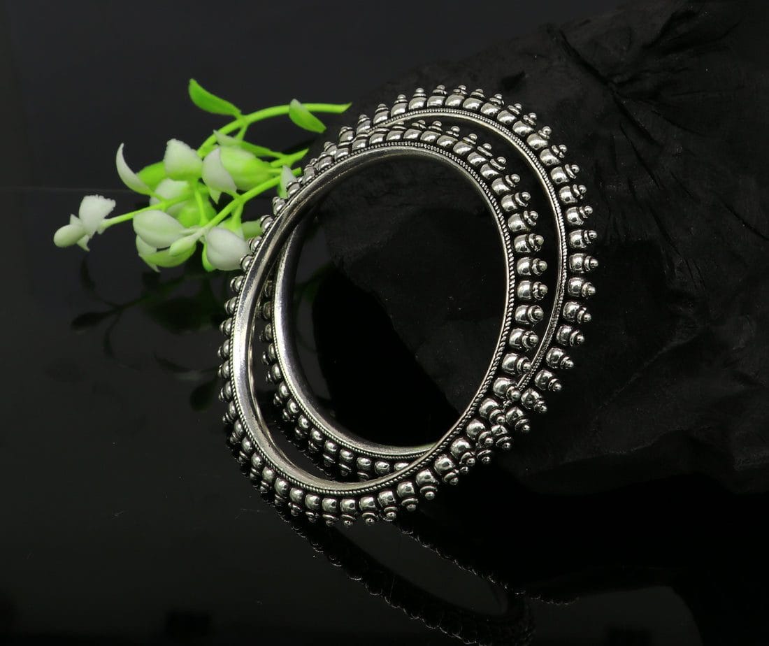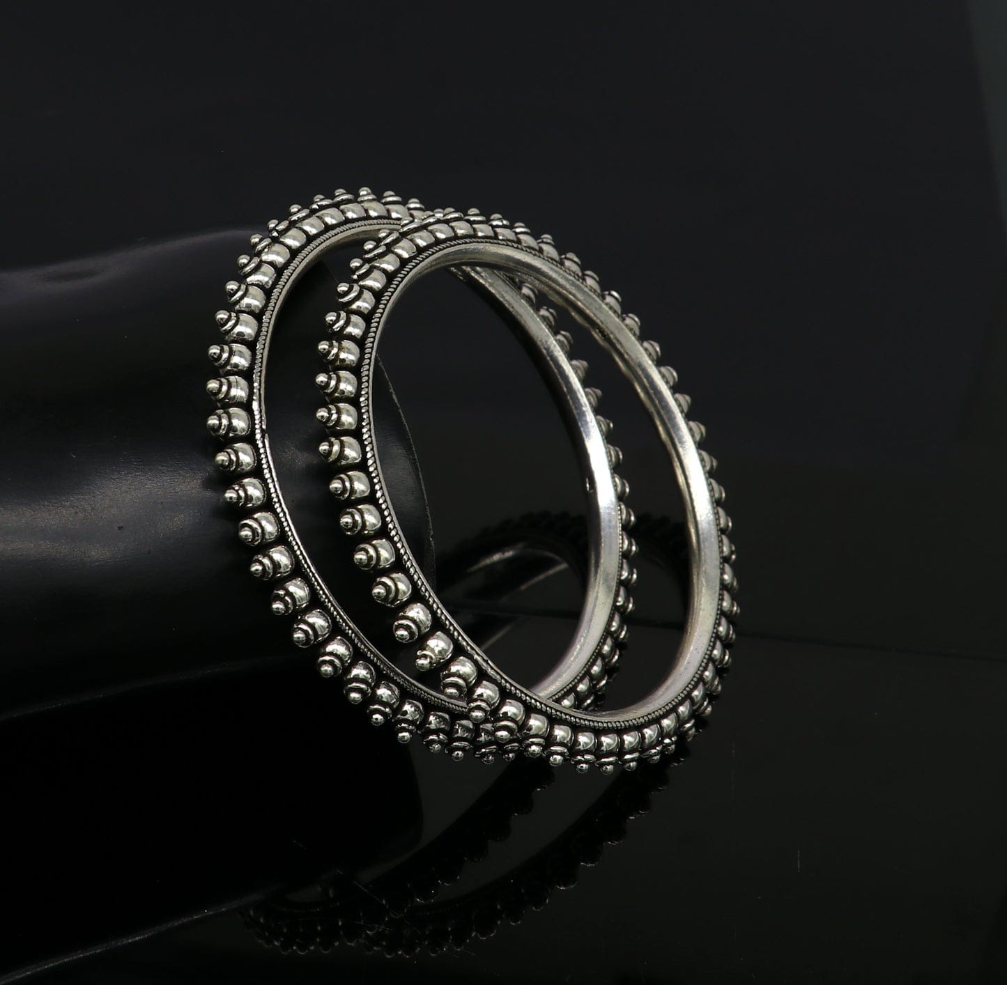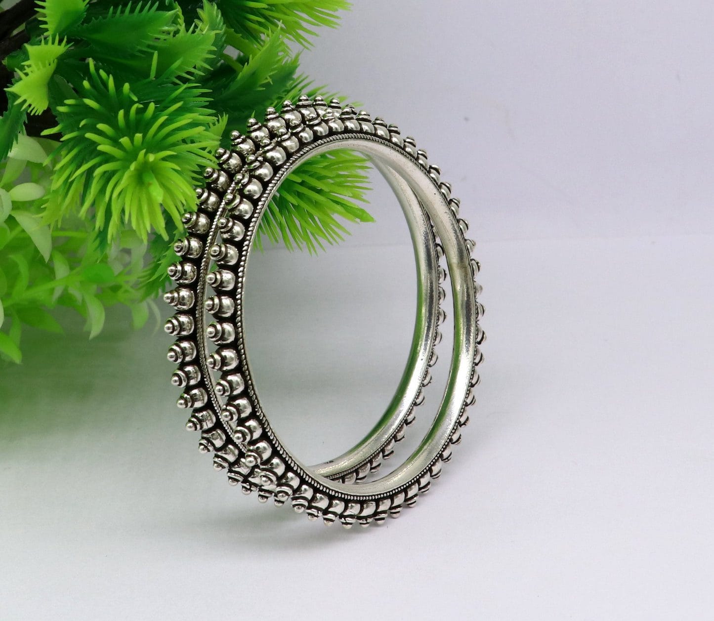 Introducing our Bangles collection of Oxidised Chudiya Design, handcrafted by D9creation. Each piece is a work of art, Our German Silver Bangle are made from high-quality German Silver materials, ensuring durability and long-lasting beauty. The oxidized finish gives them a unique and distinctive look, with a dark patina that adds depth and character to the jewelry.