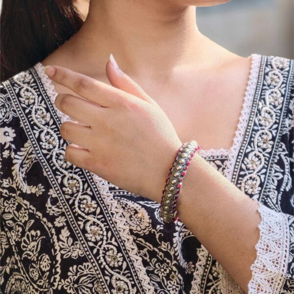 Designed for comfort, our Designer Kangan Style Oxidised Bracelets and Bangles are lightweight and easy to wear. The adjustable closures ensure a perfect fit, allowing you to customize the size according to your preference.