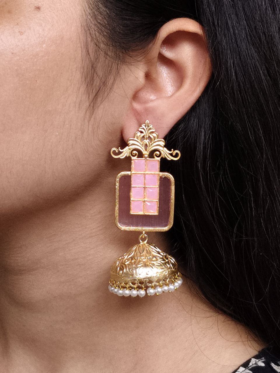 At an affordable price, these Floral Art Jhumka Earrings allow you to experience premium quality jewelry without stretching your budget. Whether you are attending a festive function, dressing up for a wedding, or simply want to add a touch of elegance to your everyday style, these floral art Monalisa stone jhumkas with pearl work are the perfect choice.