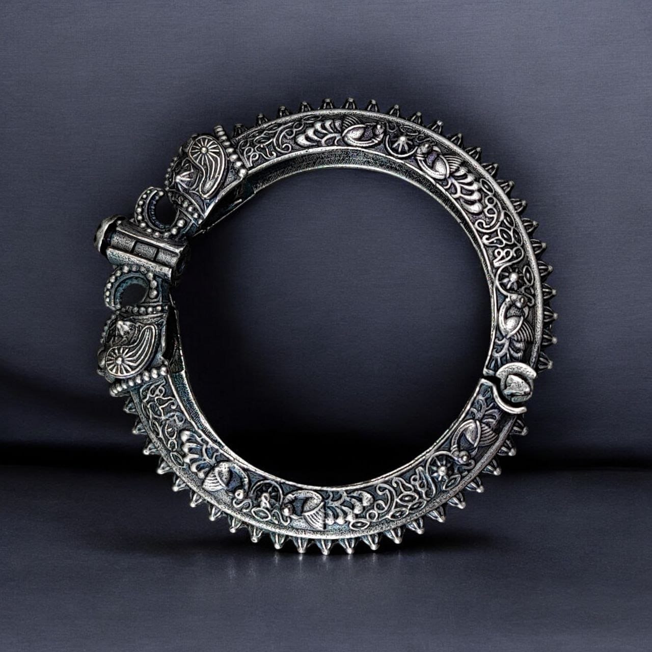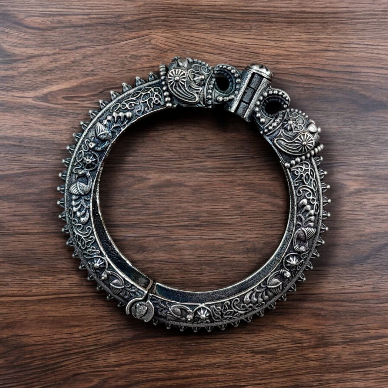 This oxidised Elephant Kada bangle is designed to fit various wrist sizes, thanks to its flexible openable feature. Whether you’re dressing up for a wedding, celebrating a festival, or adding flair to your everyday attire, this kada is the perfect choice. Pair it with traditional outfits like sarees and lehengas or blend it with modern ensembles for a chic look. The versatility of this bracelet allows it to complement any outfit effortlessly.