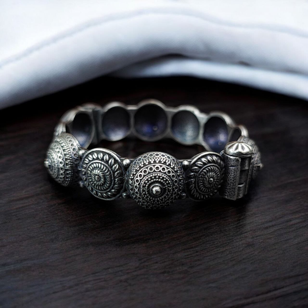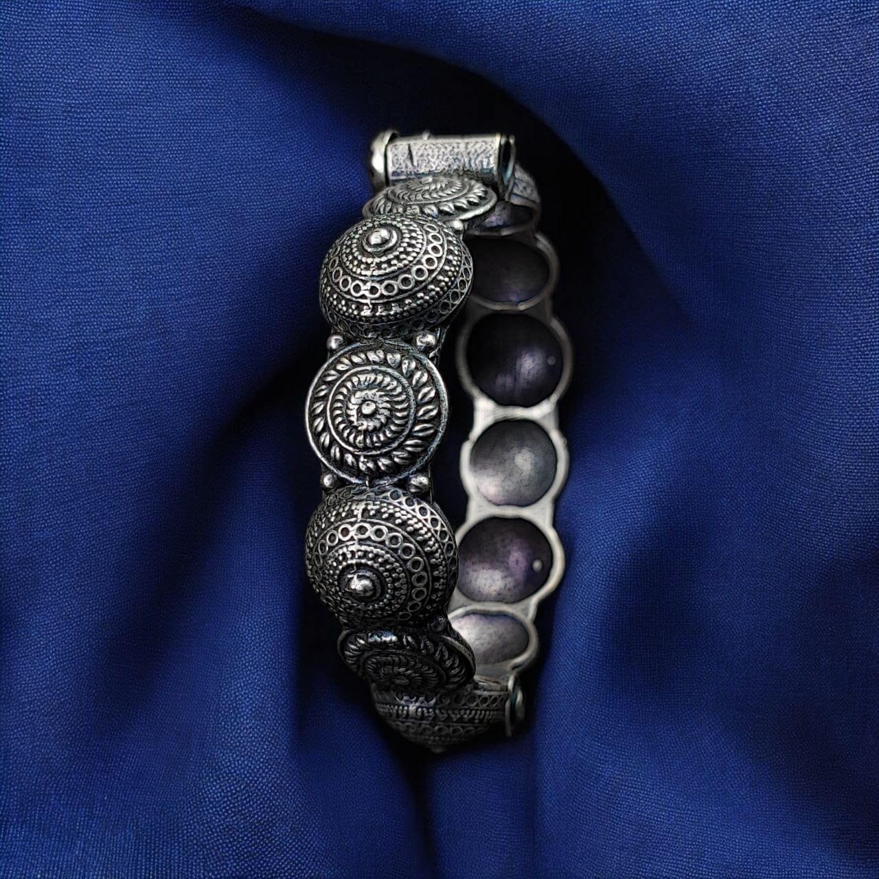 Crafted from high-quality materials, our Antique Design Oxidised Bracelets promise durability and longevity. Each piece is meticulously handcrafted by skilled artisans, ensuring that you receive a product that meets the highest standards of quality. The oxidized finish not only enhances the aesthetic appeal but also protects against tarnishing, allowing you to enjoy these beautiful bracelets for years to come.