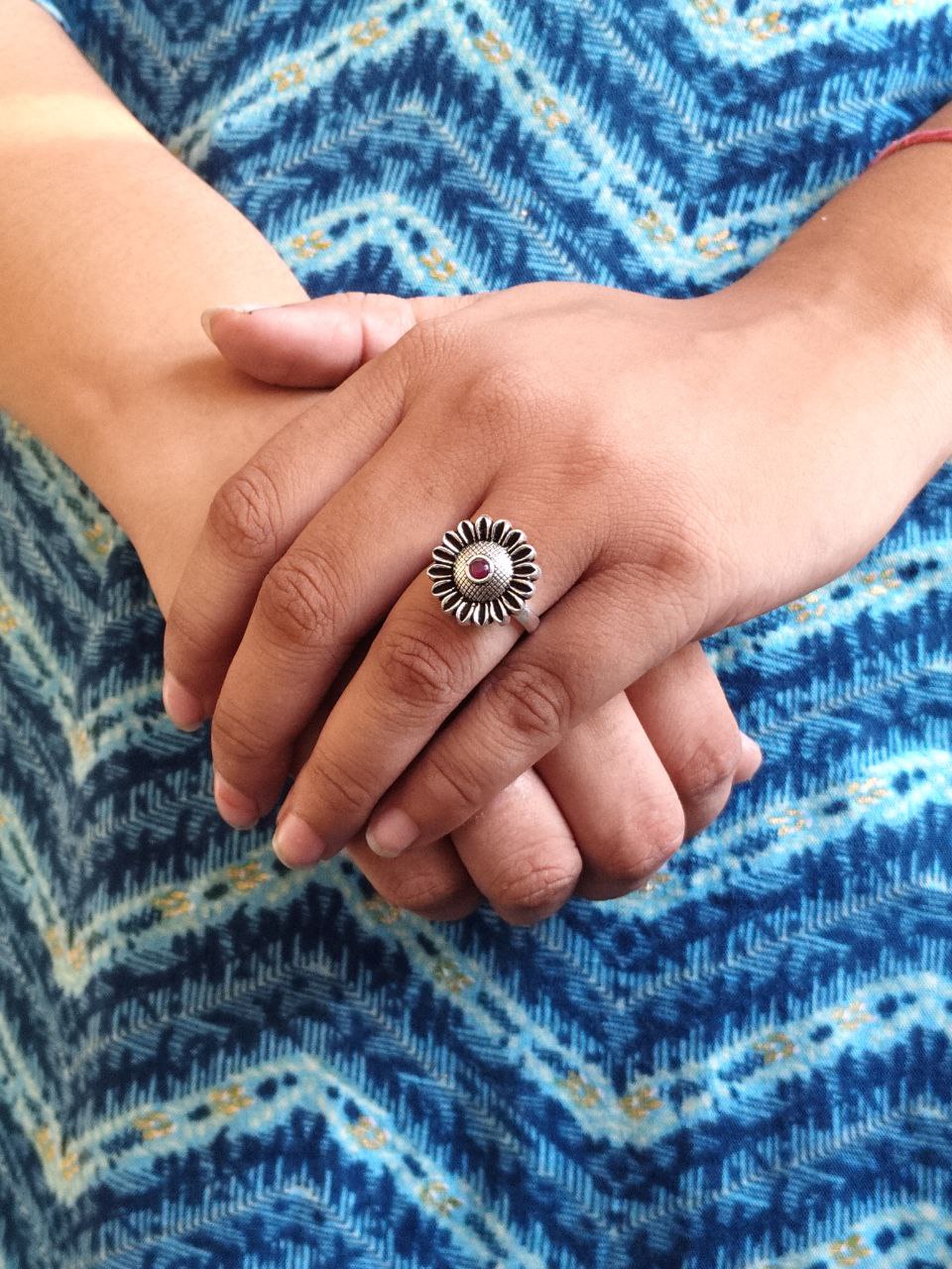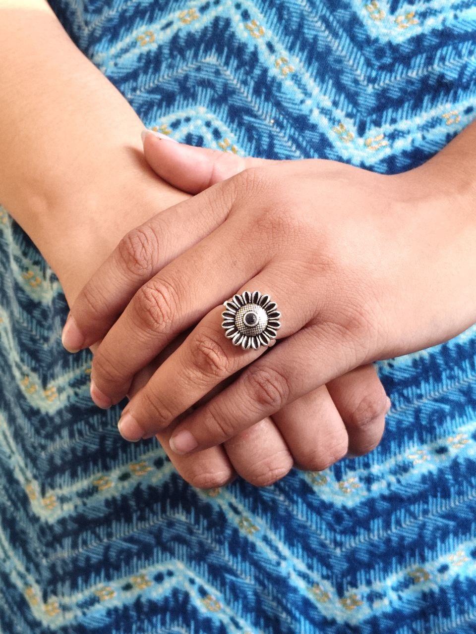 From festive gatherings to casual meet-ups, this silver replica oxidized flower design ring is designed to suit multiple occasions. Pair it with bangles, earrings, or necklaces from your jewelry box for a coordinated and stylish look. The versatility of its design ensures it can complement both traditional sarees and lehengas as well as modern dresses and kurtis.