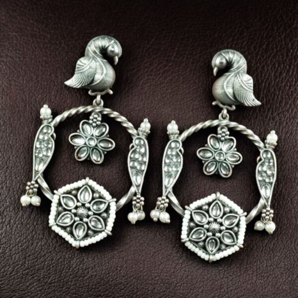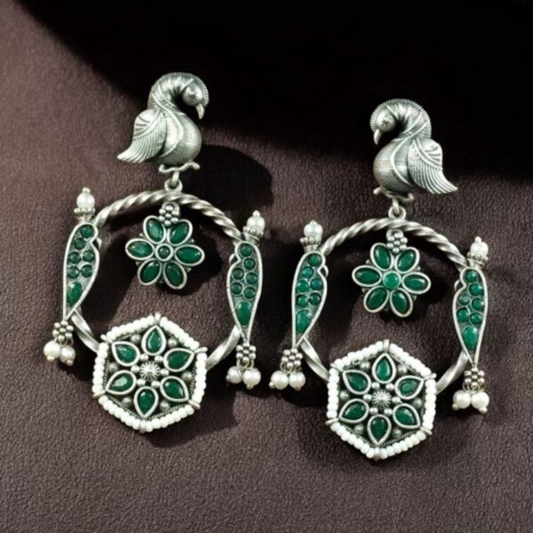 Elegant, expressive, and beautifully crafted ? these Oxidized Silver Replica Bird Design Stone & Pearl Earrings are the perfect accessory for anyone who loves jewelry with meaning, beauty, and style. Add them to your collection and enjoy wearing a piece that truly stands out.
