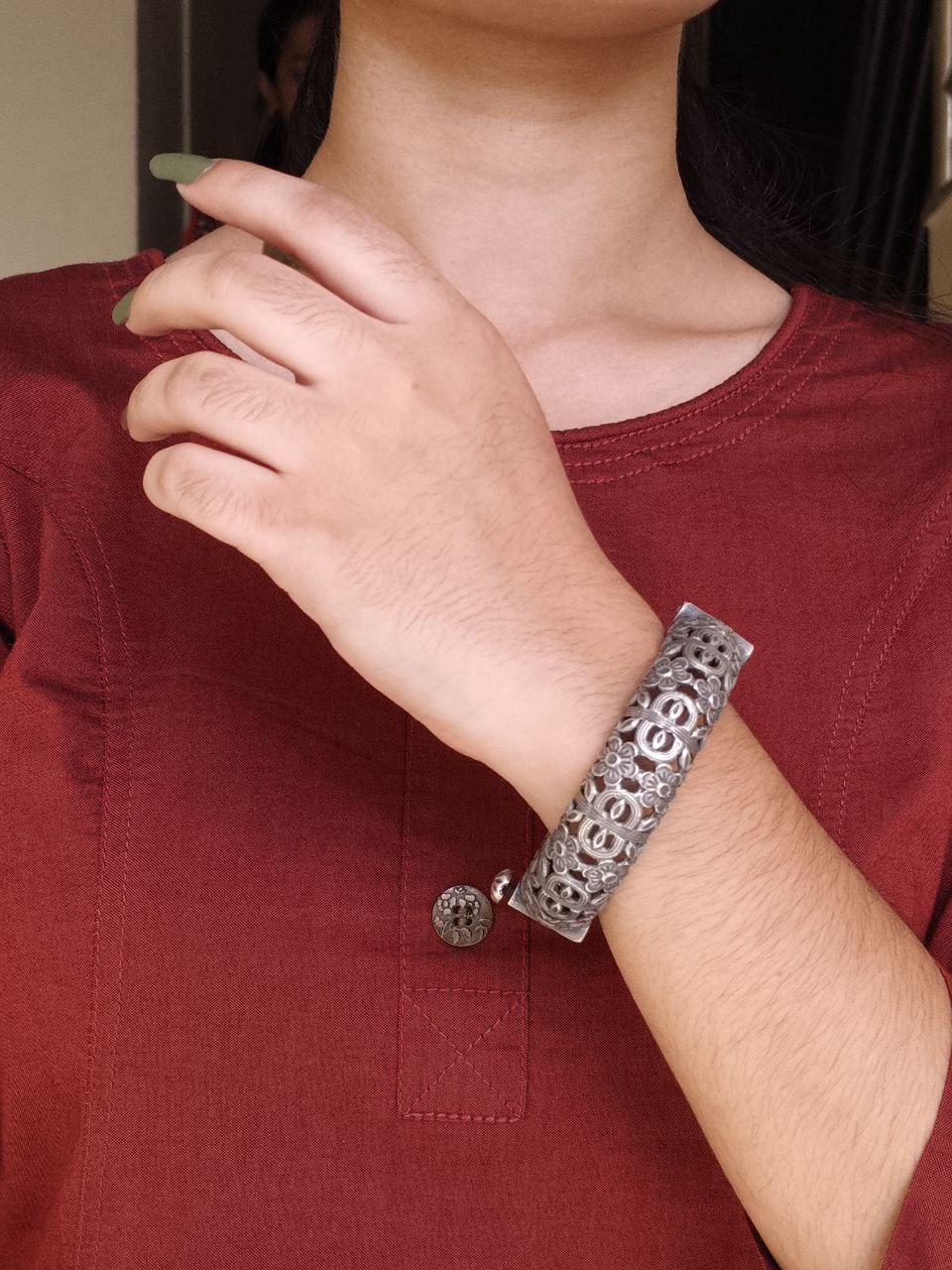Bring home the charm of tradition with this Silver Replica Flower Kada ? an elegant piece that embodies beauty, culture, and sophistication.