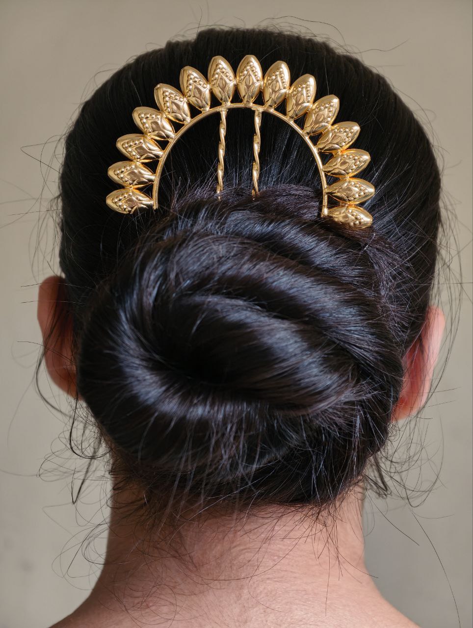 Designed for comfort and functionality, this gold plated juda pin provides a secure grip that holds your bun neatly in place throughout the day. Lightweight and smooth, it allows for long hours of wear without discomfort or hair damage. Whether you are attending weddings, festivals, family gatherings, or cultural events, this accessory ensures your hairstyle remains perfect and polished.