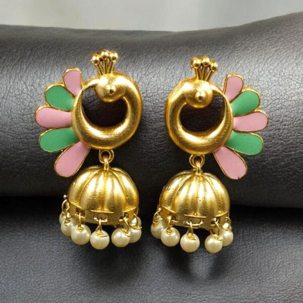 Introduce elegance, color, and tradition to your jewelry box with these Beautiful Peacock Meenakari Earrings, designed to add a touch of royalty and ethnic charm to your look. Expertly crafted with premium gold plating, intricate Meenakari work, and delicate pearl detailing, these jhumki-style dangler earrings are perfect for women who love luxurious, artistic, and timeless jewelry pieces.