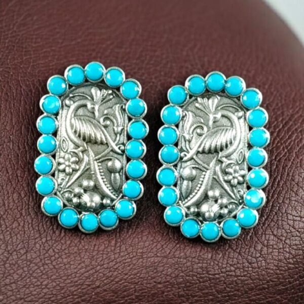 Perfect for daily wear, these lightweight earrings are comfortable and skin-friendly, allowing you to style them effortlessly from morning to evening. Whether you?re heading to the office, a festive gathering, or a casual outing, these Oxidized Peacock Stud Earrings add an instant touch of charm and elegance to your look. Their sturdy push-back closure ensures a secure fit, so you can wear them all day without discomfort.