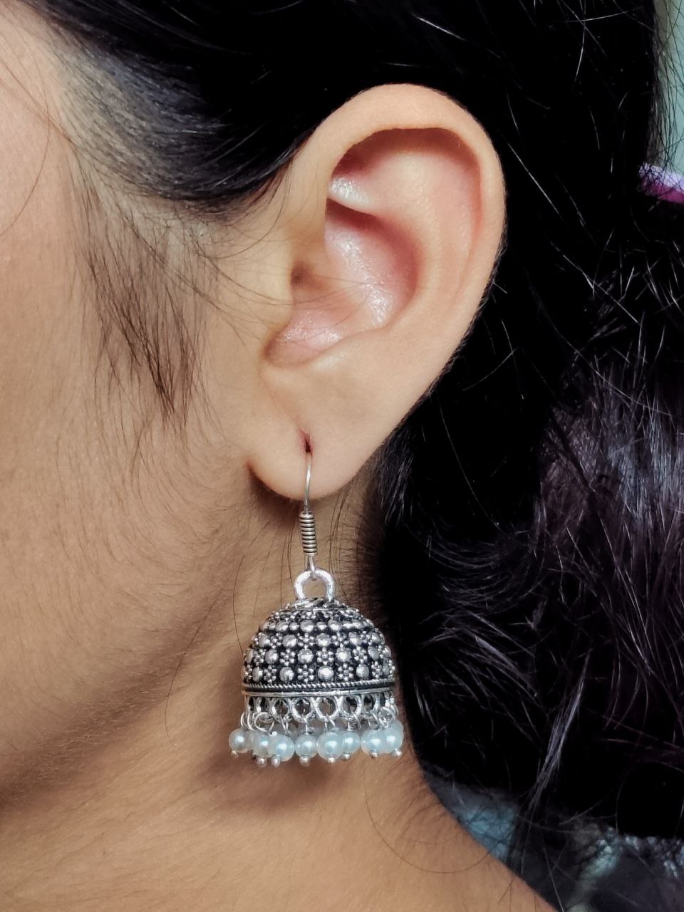 Add these ethnic pearl work jhumki earrings to your jewelry box and embrace a blend of elegance and tradition. Whether you are preparing for a casual outing or a festive occasion, these earrings are sure to make you stand out with their graceful design and timeless beauty.