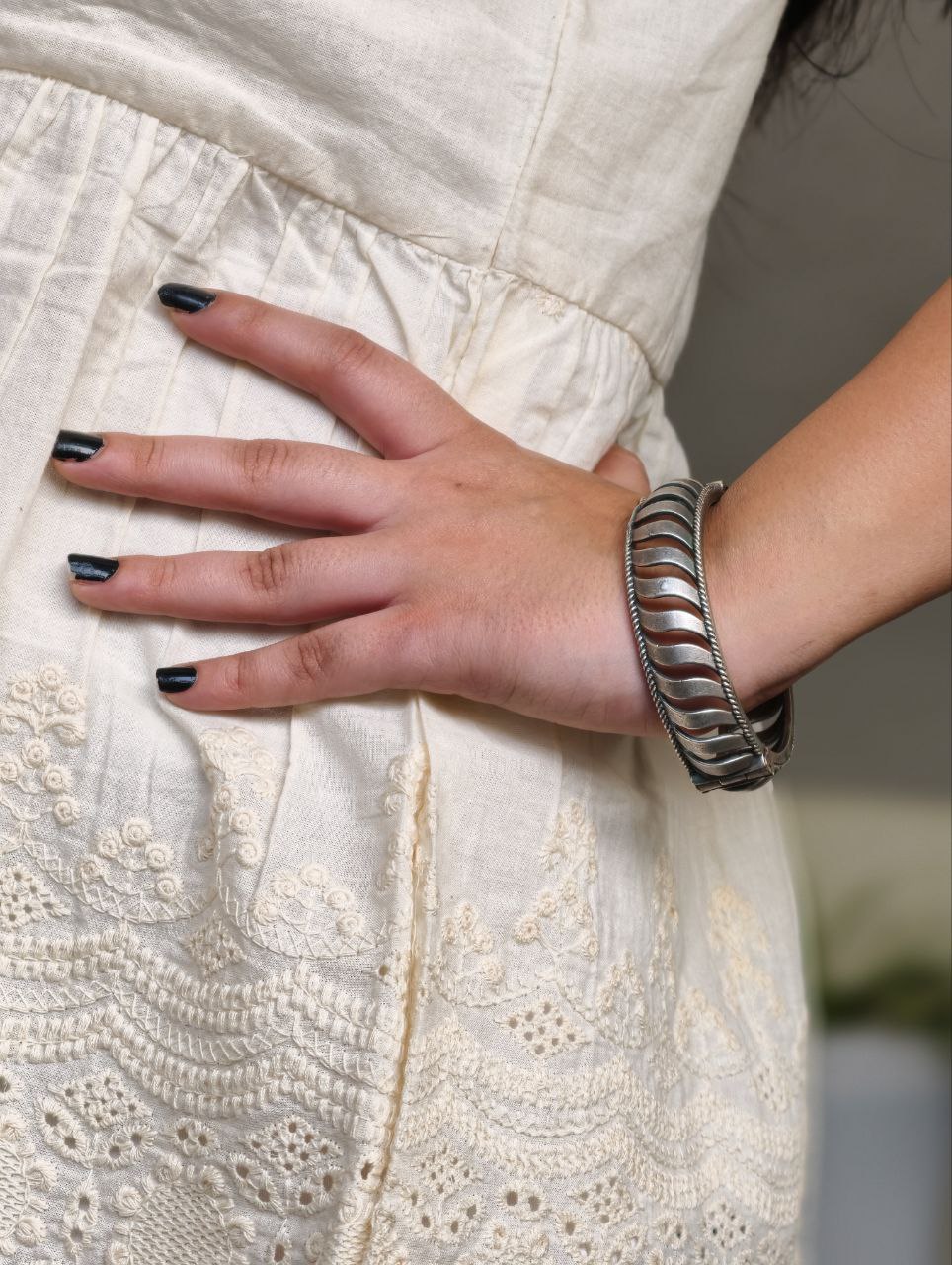 Designed to suit all age groups, this elegant silver replica Openable Bangle blends beautifully with both minimal and layered jewelry looks. You can wear it alone for a clean, classy appearance or pair it with other bangles and bracelets to create a trendy stacked style. Its versatile design makes it suitable for traditional outfits like sarees, salwar suits, and lehengas, as well as contemporary wear such as dresses and tops.