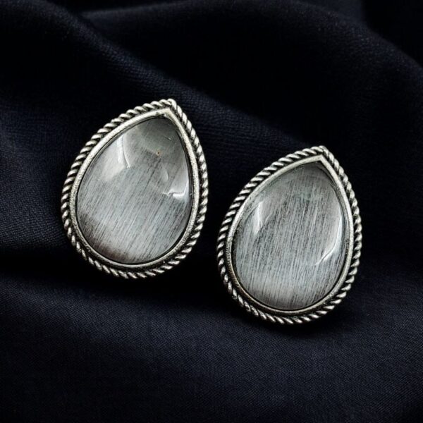 Elevate your style with the Best Drop-Shaped Monalisa Stone Stud Earrings in Silver Replica Design, a perfect blend of elegance and sophistication. These stunning earrings are designed to complement any outfit, making them an essential addition to your jewelry collection. Crafted with meticulous attention to detail, they showcase a timeless drop-shaped Monalisa stone, renowned for its shimmering beauty and versatility.