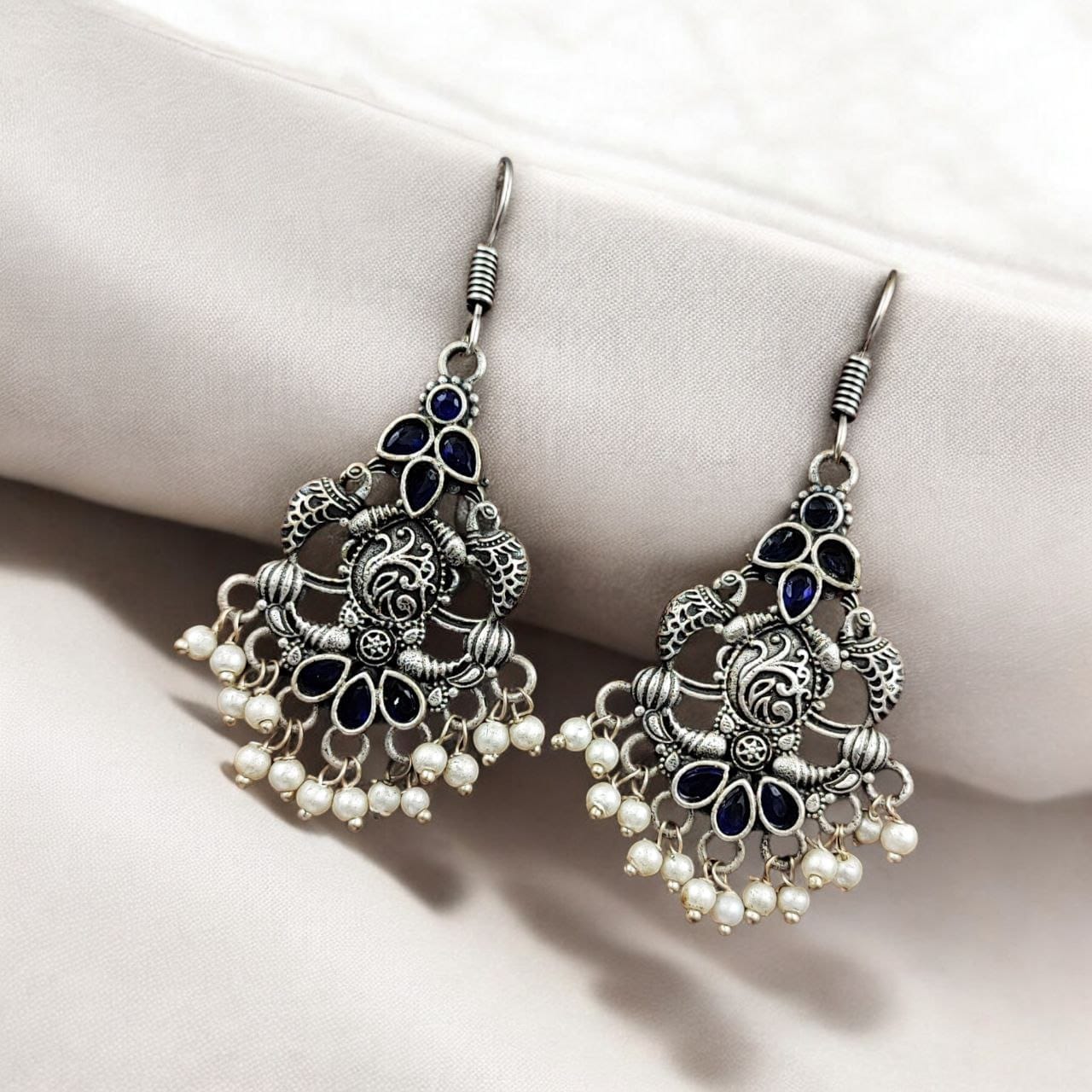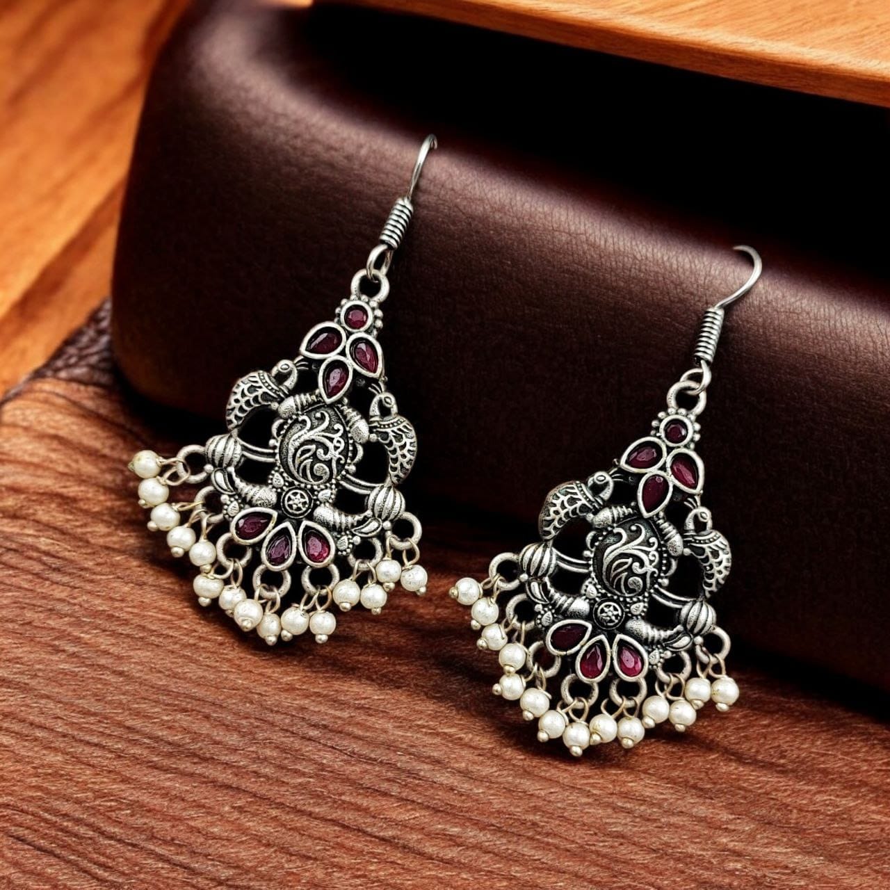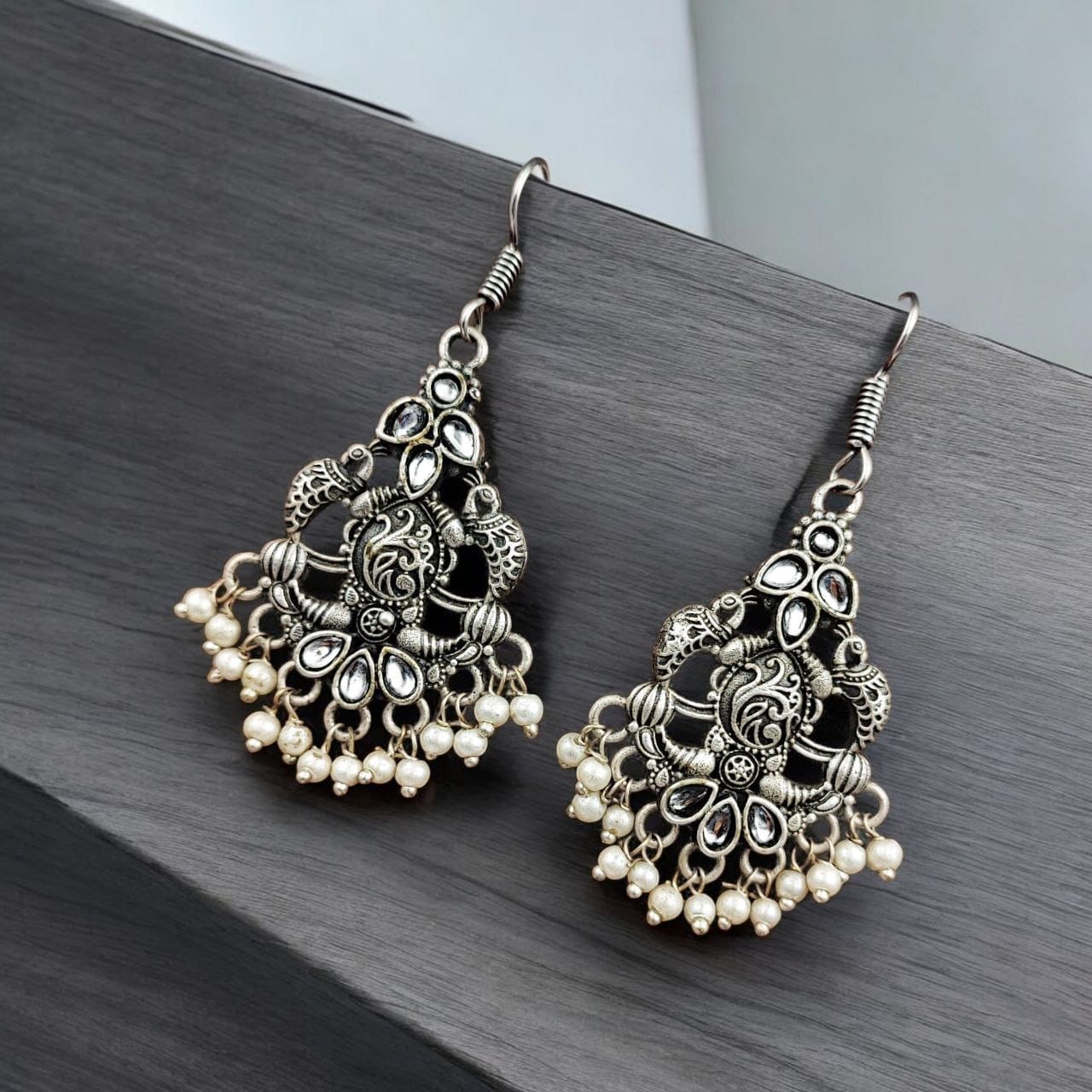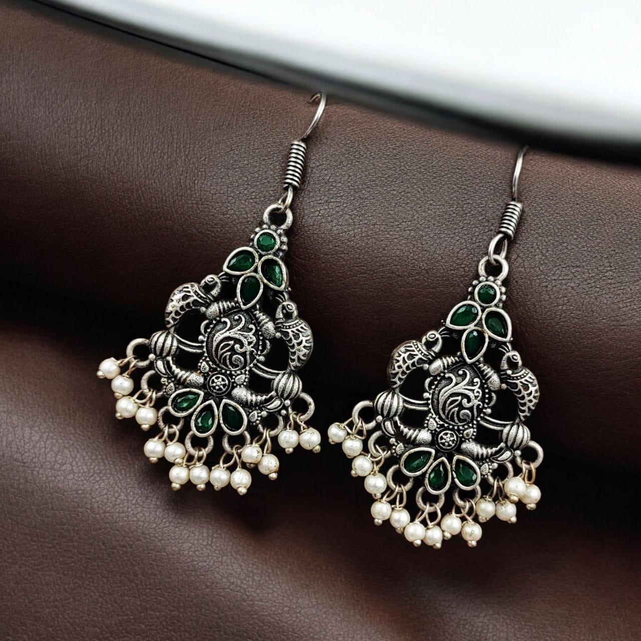 - Premium-quality brass earrings with intricate peacock detailing.