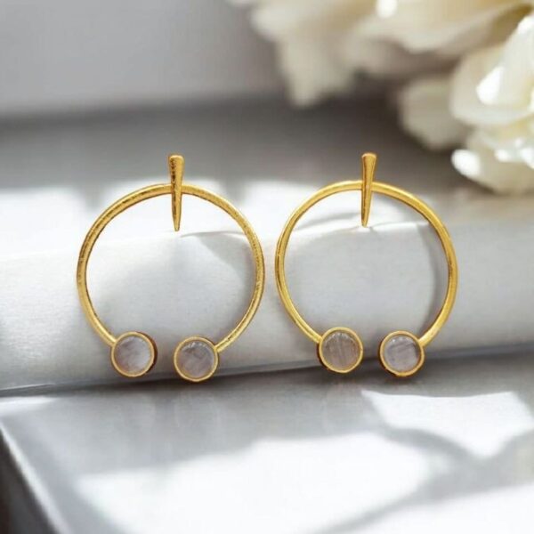 Upgrade your style with these Contemporary Golden Monalisa Stone Circle Stud Earrings and make a statement wherever you go. Shop now and embrace elegance with this best & stylish jewelry piece.