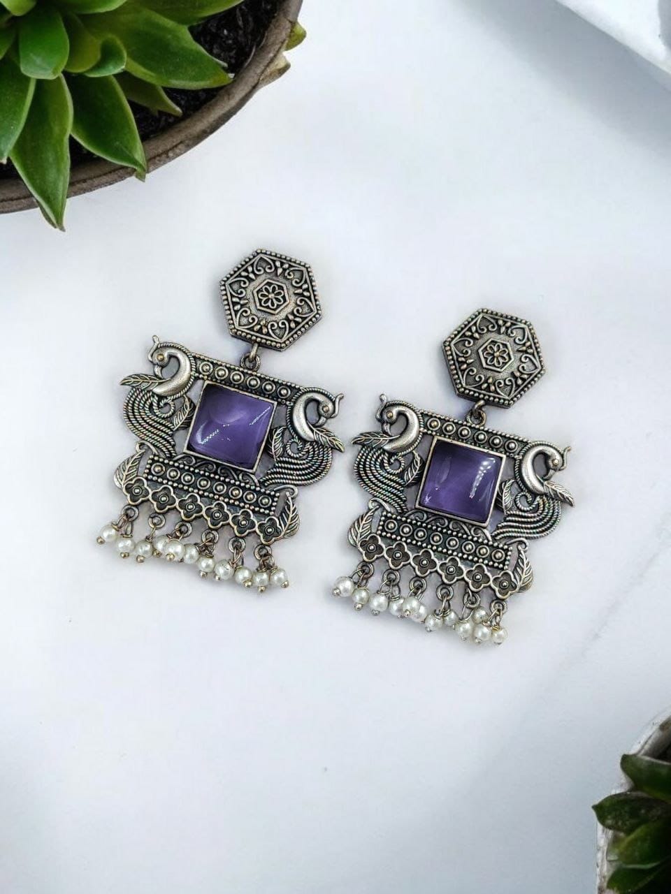 Elevate your style with these exquisite Dangler Peacock Earrings, a perfect fusion of traditional craftsmanship and contemporary elegance. Designed with intricate detailing, these oxidised earrings feature a stunning peacock motif, symbolizing beauty, grace, and royalty. Ideal for those who love statement jewelry, these earrings add a touch of charm and sophistication to any outfit.