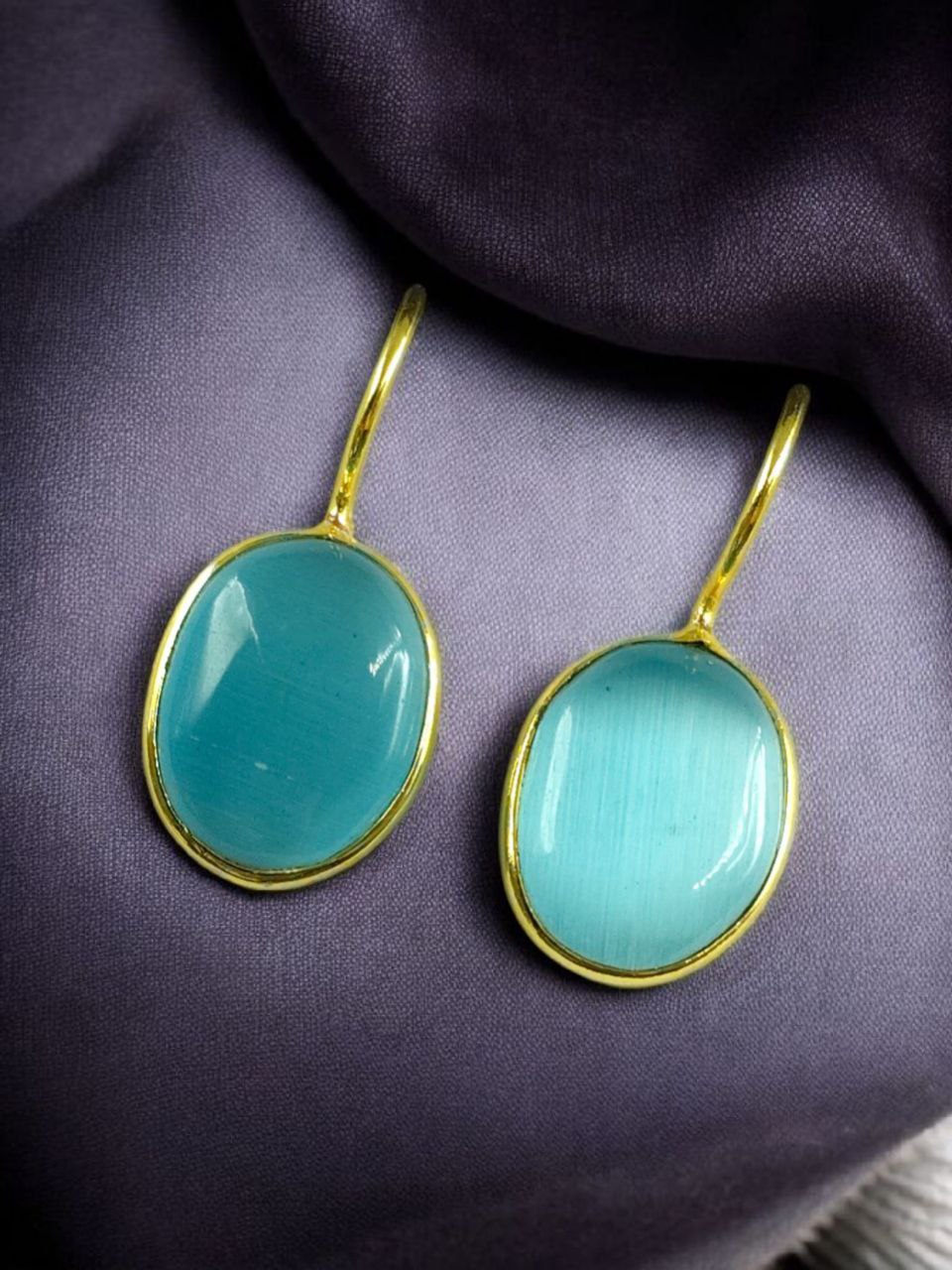 Each earring is crafted with meticulous attention to detail, reflecting timeless craftsmanship. The hook style ensures a secure and comfortable fit, making them ideal for long hours of wear without any discomfort. The Monalisa stones, known for their soft iridescent glow, beautifully complement the gold finish, creating a stunning balance of luxury and sophistication.