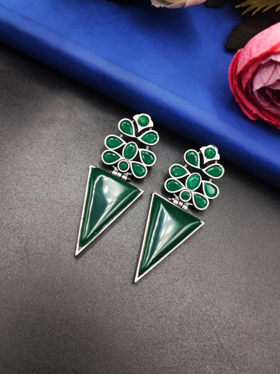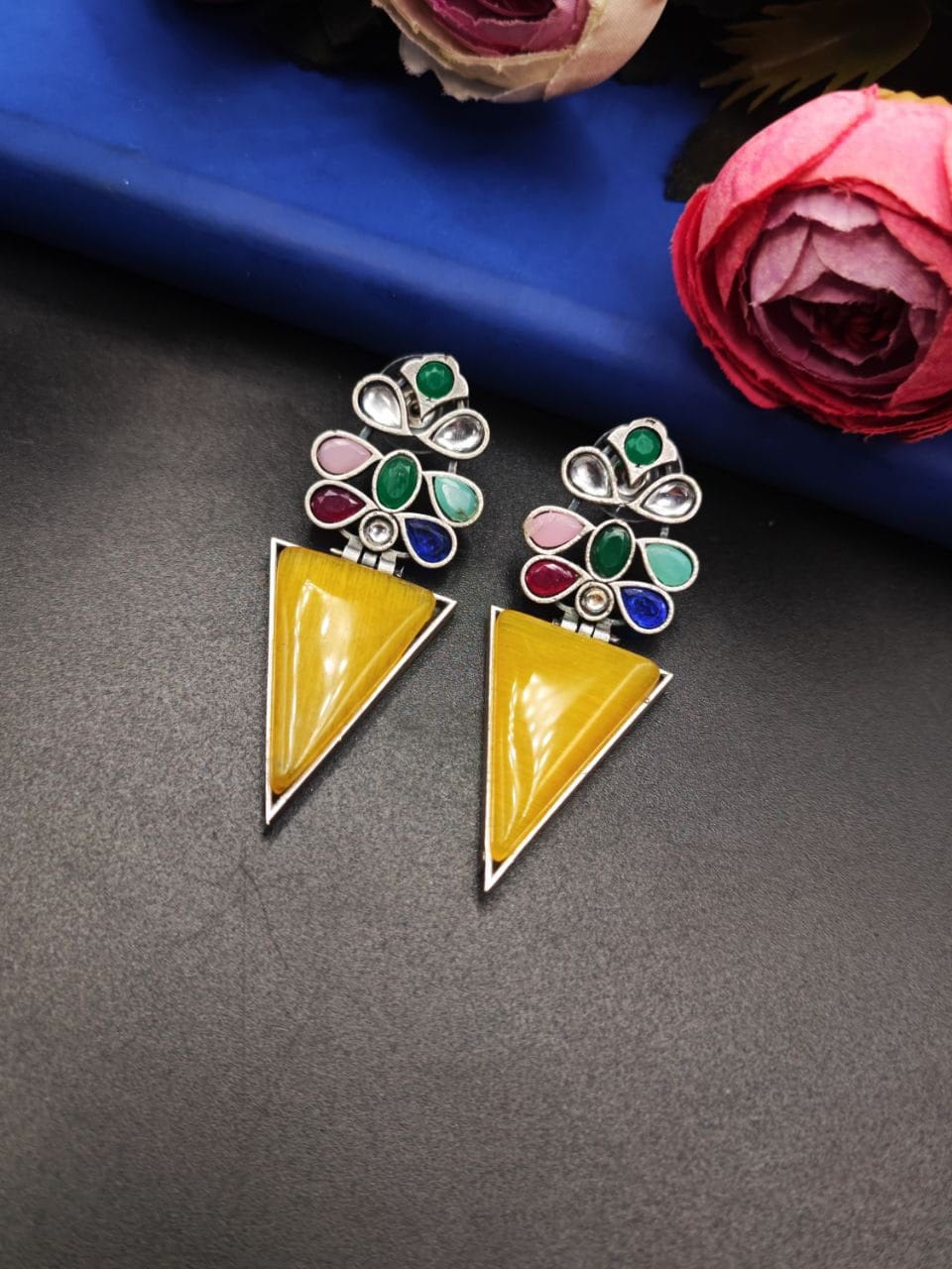 Searching for the perfect gift for a special someone? Our Designer Monalisa Silver Replica Dangler Earrings are an excellent choice for birthdays, anniversaries, or any celebration. Their unique design and exquisite stones make them a thoughtful and memorable gift. The Monalisa stone is associated with creativity and inspiration, adding a deeper significance to this already beautiful present.
