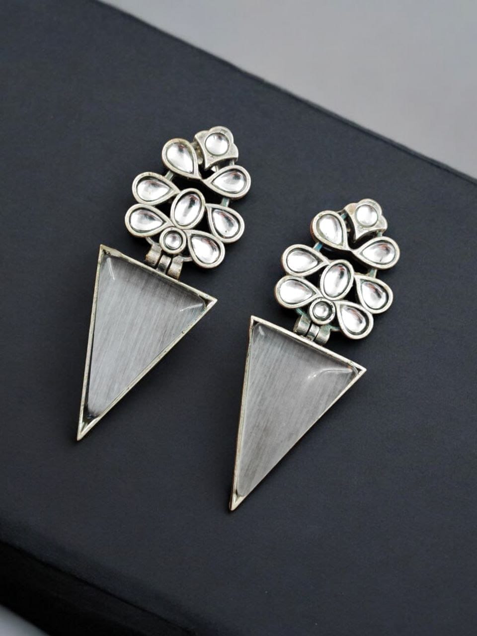 Elevate Your Style with Designer Monalisa Silver Replica Dangler Earrings