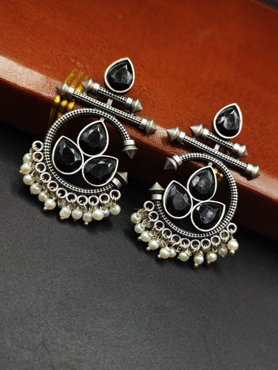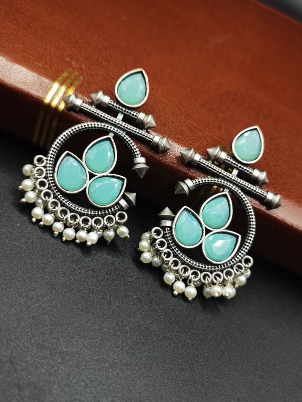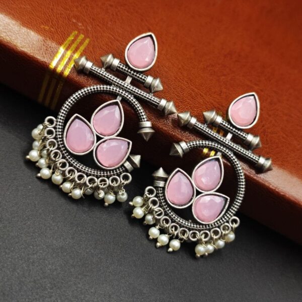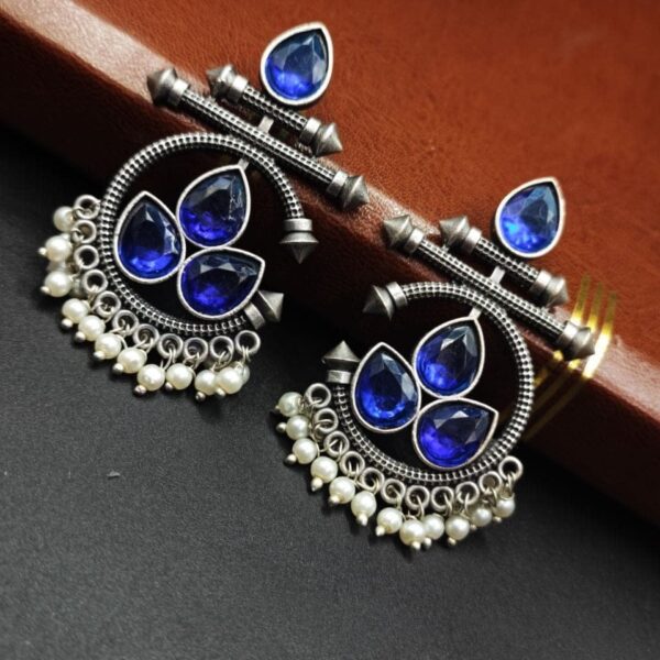 The Silver Replica Design Stud Silver Look aLike Earrings with Pearl Beads & Stones Chandbali Earrings are exquisite pieces of jewelry that combine elegance and nature-inspired design. Here’s a description of these stunning earrings: