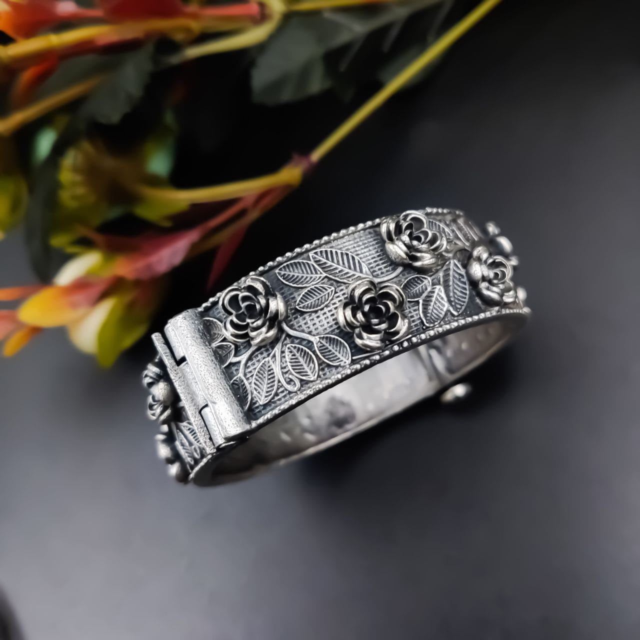 Our Designer Silver Look Like Kada is not only aesthetically pleasing but also practical. Made from high-quality materials, this Rose Bangle is lightweight, ensuring comfort for all-day wear. Its durable design means it can withstand the rigors of daily use, making it a reliable choice for every occasion. The faux silver finish is tarnish-resistant, allowing you to enjoy its beauty without the worry of fading.