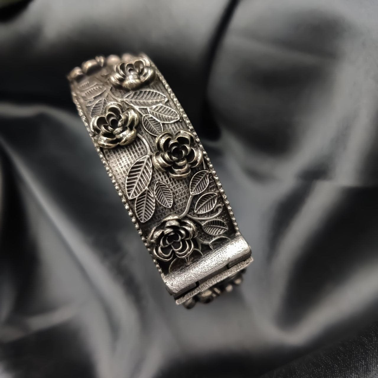 In conclusion, our Designer Silver Look Like Kada Rose Bangle for girls is a quintessential piece that combines traditional artistry with modern aesthetics. Enhance your jewelry collection with this stunning kada, and make a statement that reflects your unique style!