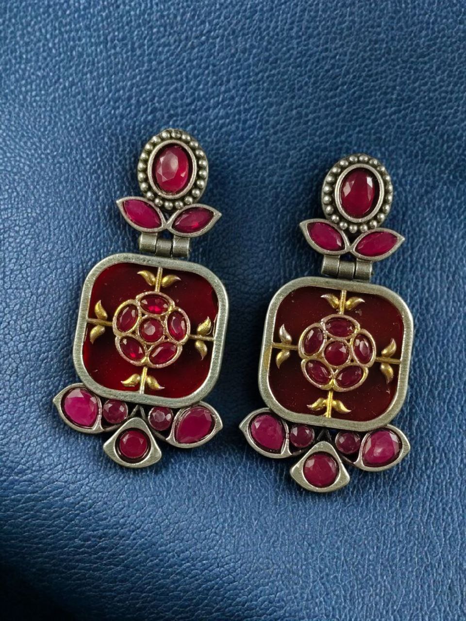 The oxidized silver replica base gives them a vintage charm, while the Monalisa stone adds sophistication?making them a versatile must-have for every jewelry lover. Their durable build, elegant craftsmanship, and trendy appeal also make them an excellent gifting option for birthdays, anniversaries, festive celebrations, or special occasions.