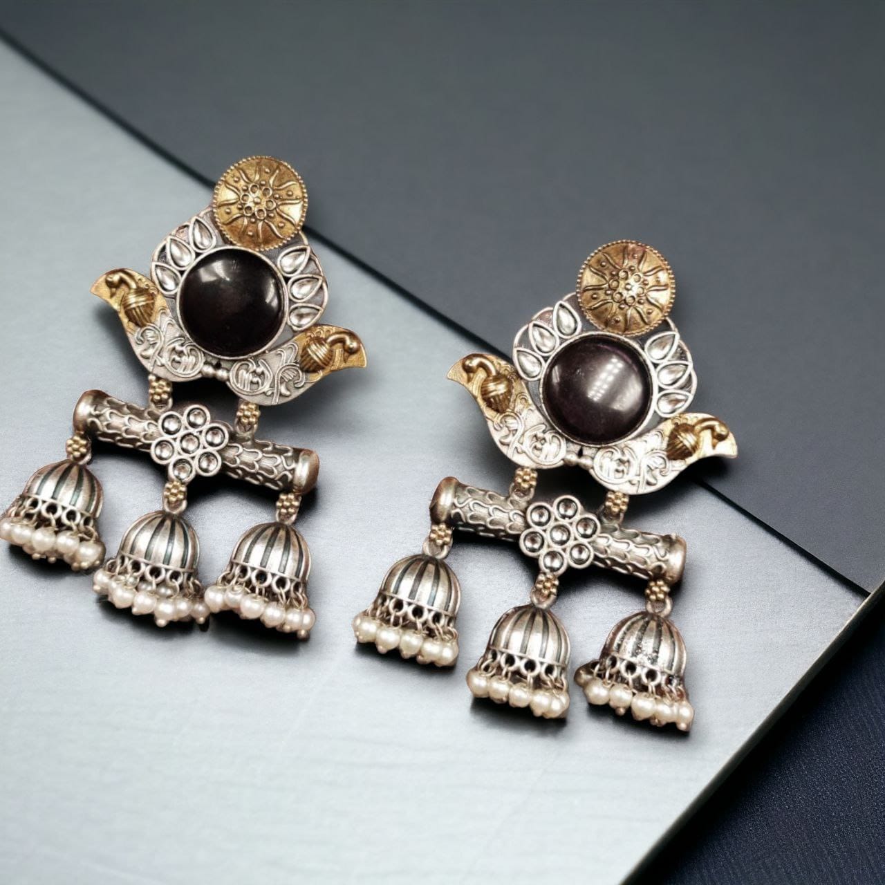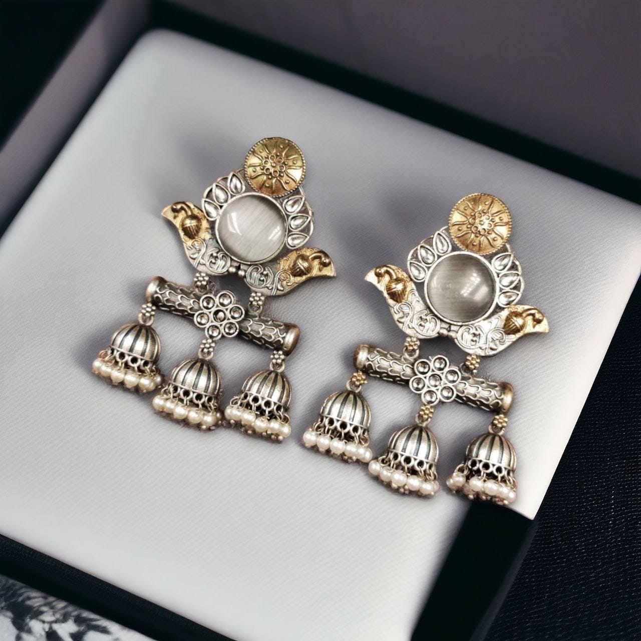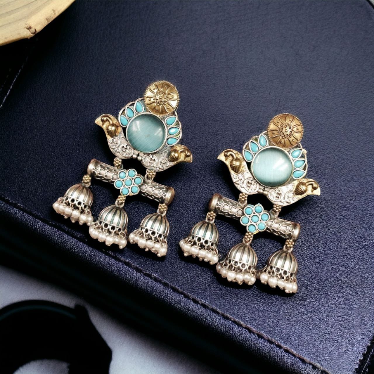 Whether you pair them with a saree, lehenga, salwar suit, or indo-western attire, these earrings will elevate your ethnic look instantly. The dual-tone finish ensures versatility, allowing them to blend seamlessly with both gold and silver accessories.