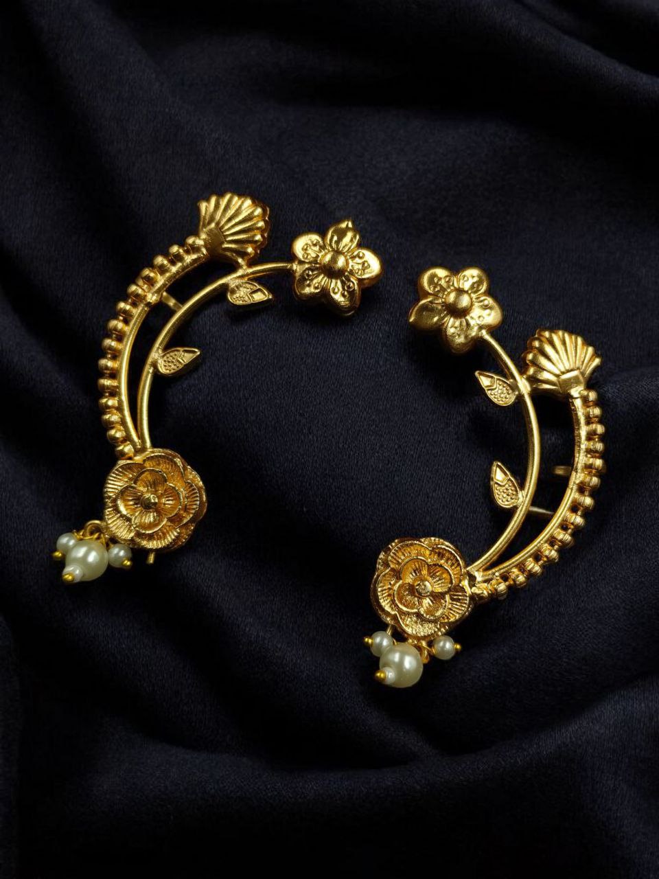 Every detail of the earcuff is carefully crafted to reflect exquisite workmanship. The rose detailing adds a feminine charm, while the pearl highlights bring sophistication. Its unique design makes it different from regular earrings, giving you a statement jewelry piece that?s both versatile and stylish.