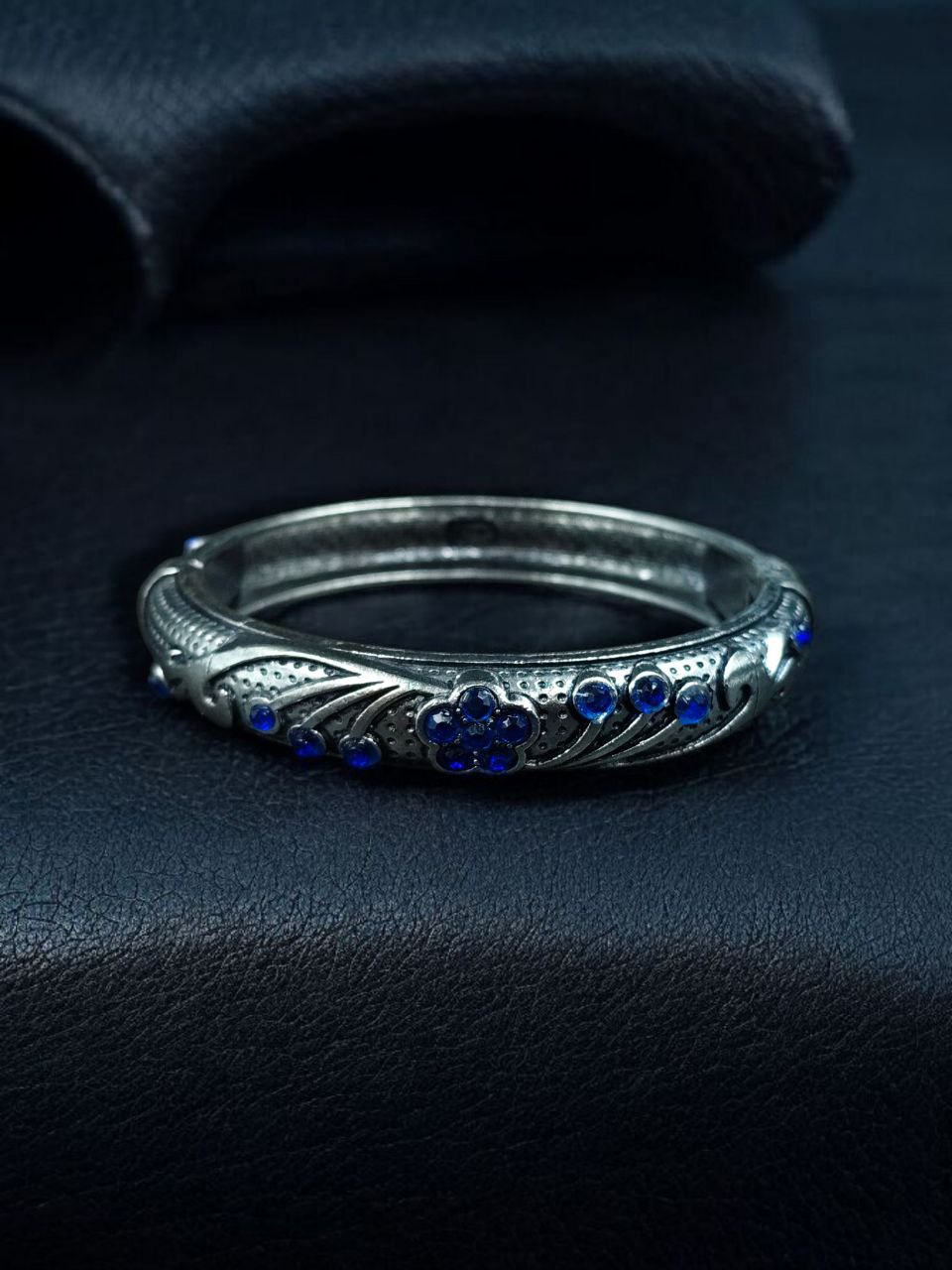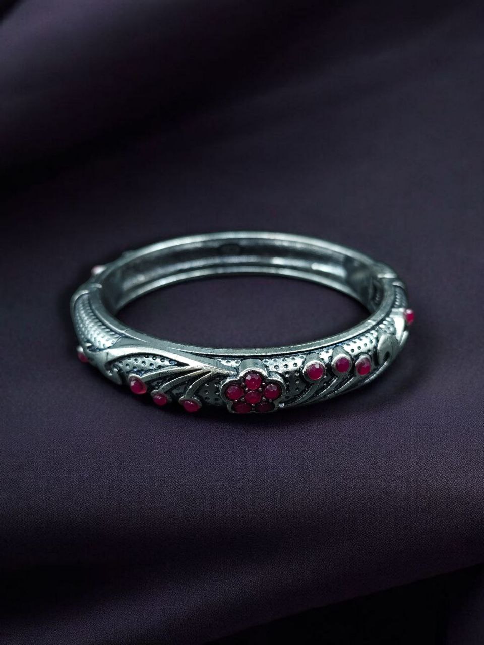 The silver plating gives the bangle a premium shine and durability while keeping it lightweight and easy to wear. The elegant stone embellishments add sparkle, giving it a rich and royal appeal. Whether paired with sarees, lehengas, salwar suits, or Indo-Western outfits, this kada completes your ensemble effortlessly.