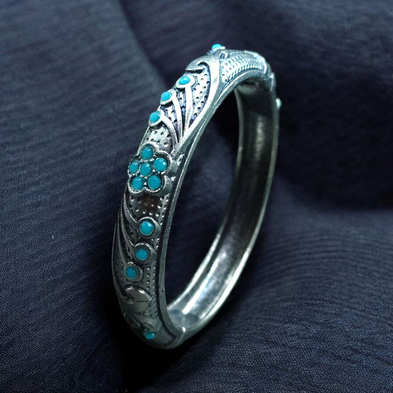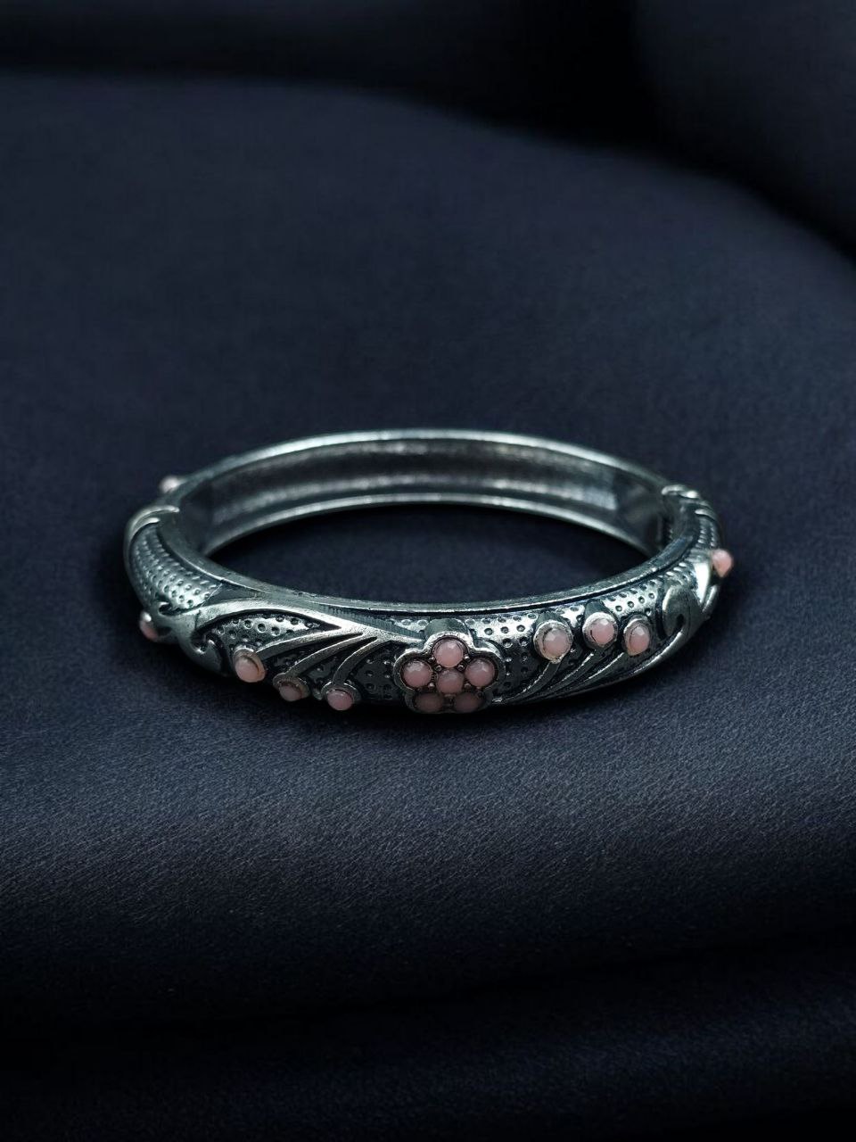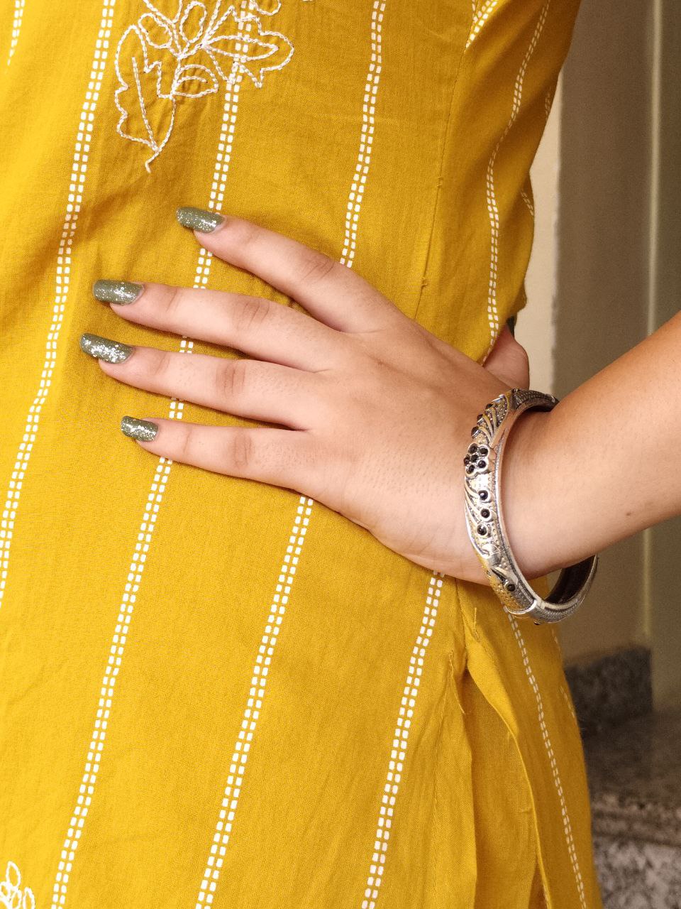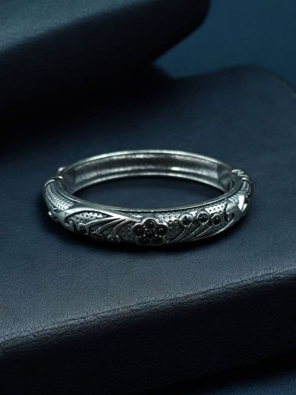 Handcrafted to perfection, this bangle is a true example of fine artistry. Add this Ethnic Silver Plated Adjustable Bangle to your jewelry box and let its timeless beauty enhance your grace and confidence every time you wear it.