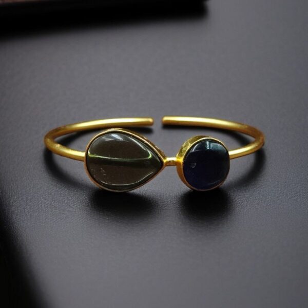 The adjustable open cuff design ensures a secure and easy fit for various wrist sizes. Crafted with skin-friendly materials and a durable gold polish, this bracelet is designed to maintain its shine and finish with proper care, making it a long-lasting piece in your jewelry collection.
