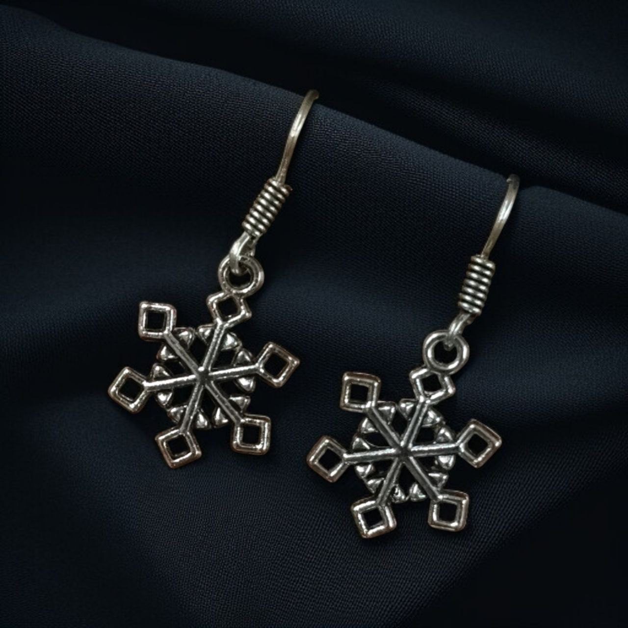 Elevate your everyday elegance with our German Silver Snowflake Dangler Earrings ? Hook Style Best Daily Wear Jewelry. Inspired by the delicate beauty of snowflakes, these Snowflake Dangler Earrings blend nature-inspired charm with ethnic craftsmanship, making them the perfect accessory for girls and women who love to add a unique touch to their daily style.