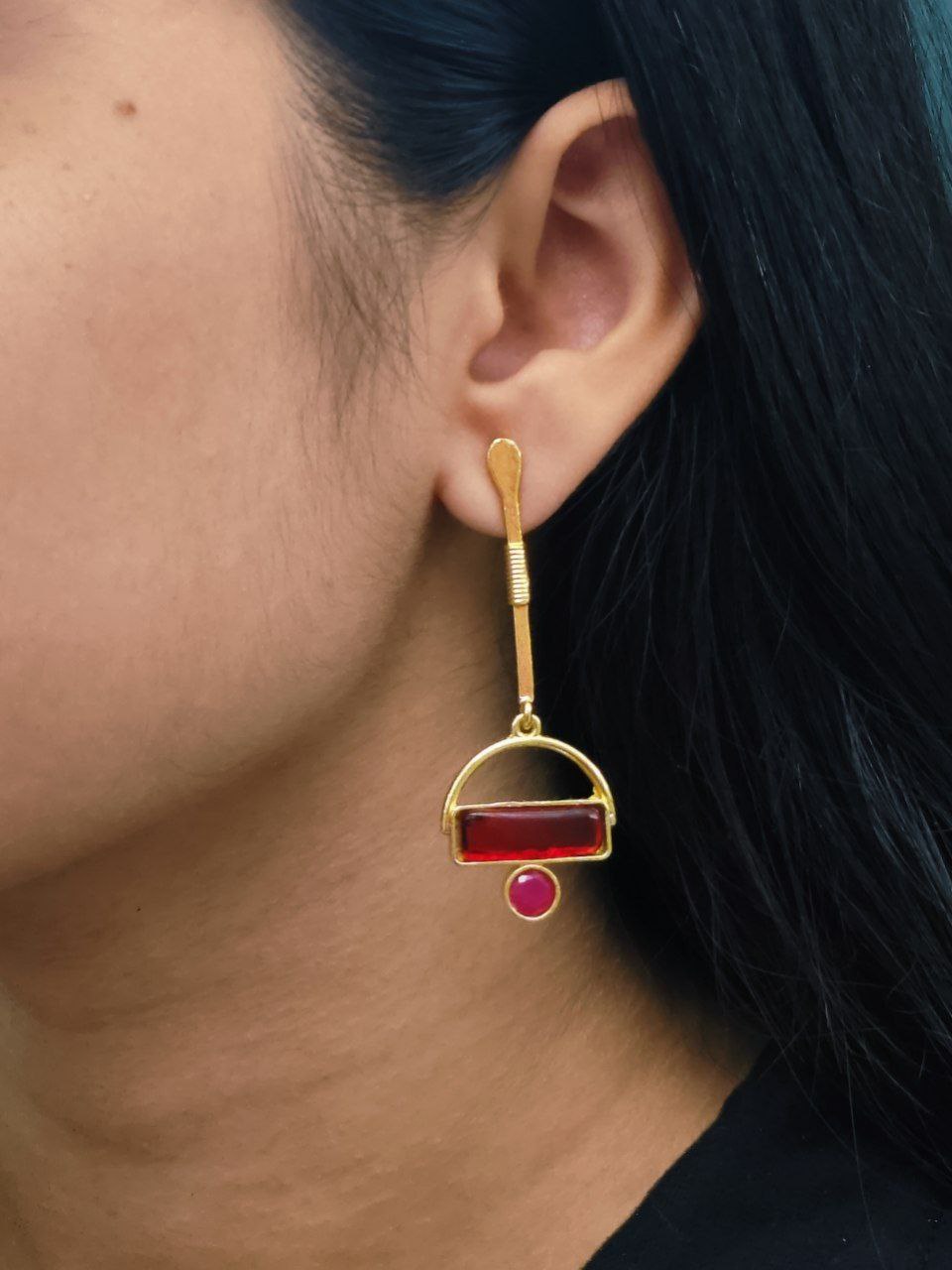 Add a touch of modern sophistication with these Gold Plated Brass Earrings?where contemporary style meets timeless stone elegance.