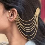 This earcuff is made from high quality brass metal and finished with premium gold plating that gives it a refined and radiant look. The lightweight structure ensures comfortable wear for long hours without causing discomfort. The chain design adds extra beauty and movement to the piece, making it stand out while maintaining a graceful traditional aesthetic.
