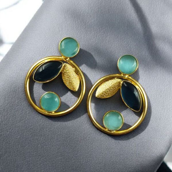Add a touch of elegance and modern charm to your jewelry collection with these stunning Gold Plated Leaf & Circle Earrings with Monalisa Stone. Designed to suit both ethnic and western looks, these Circle Design Earrings are the perfect fusion of traditional craftsmanship and contemporary style. Whether you’re dressing up for a festive event, a casual outing, or a formal function, these versatile earrings will elevate your entire outfit effortlessly.