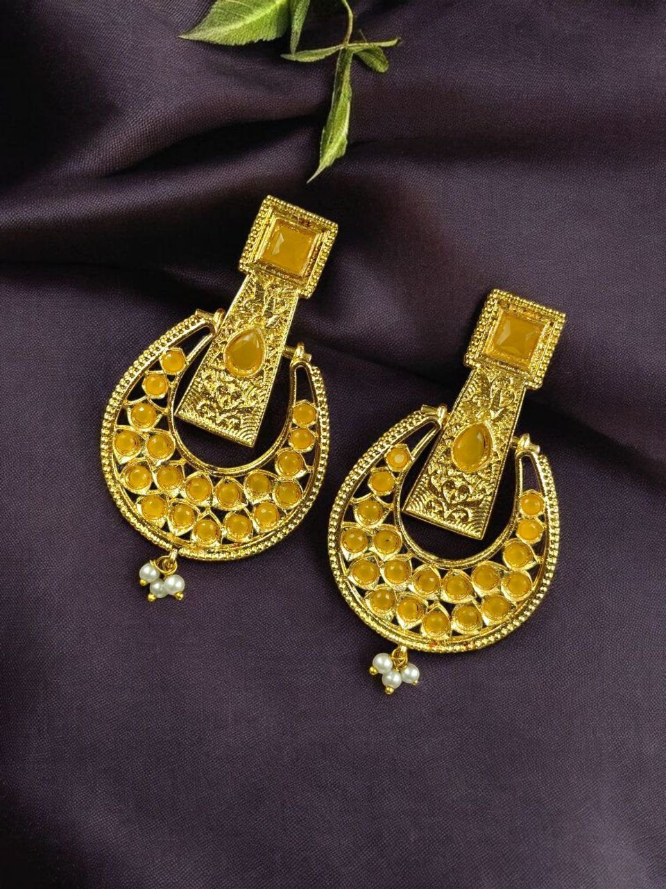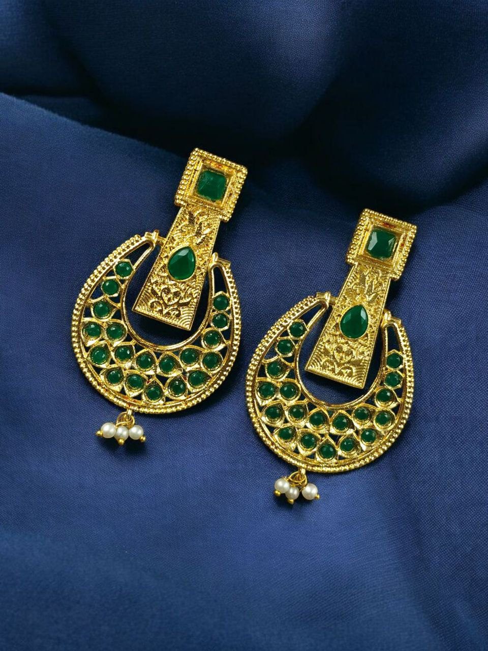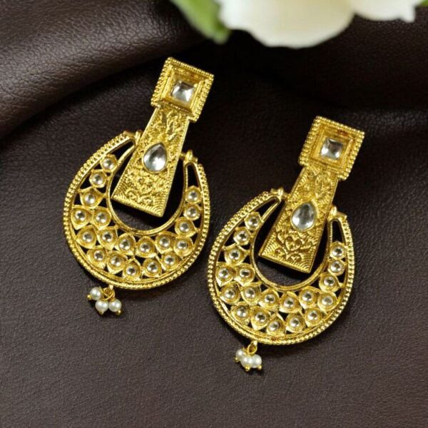 Bring home the perfect blend of ethnic heritage and modern elegance with these stunning gold plated pearl and stone earrings ? because every woman deserves jewelry that tells her story.