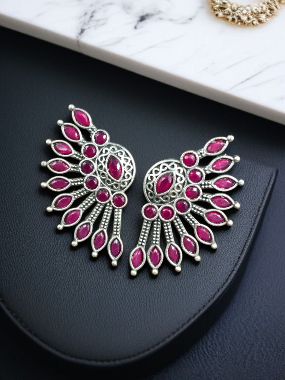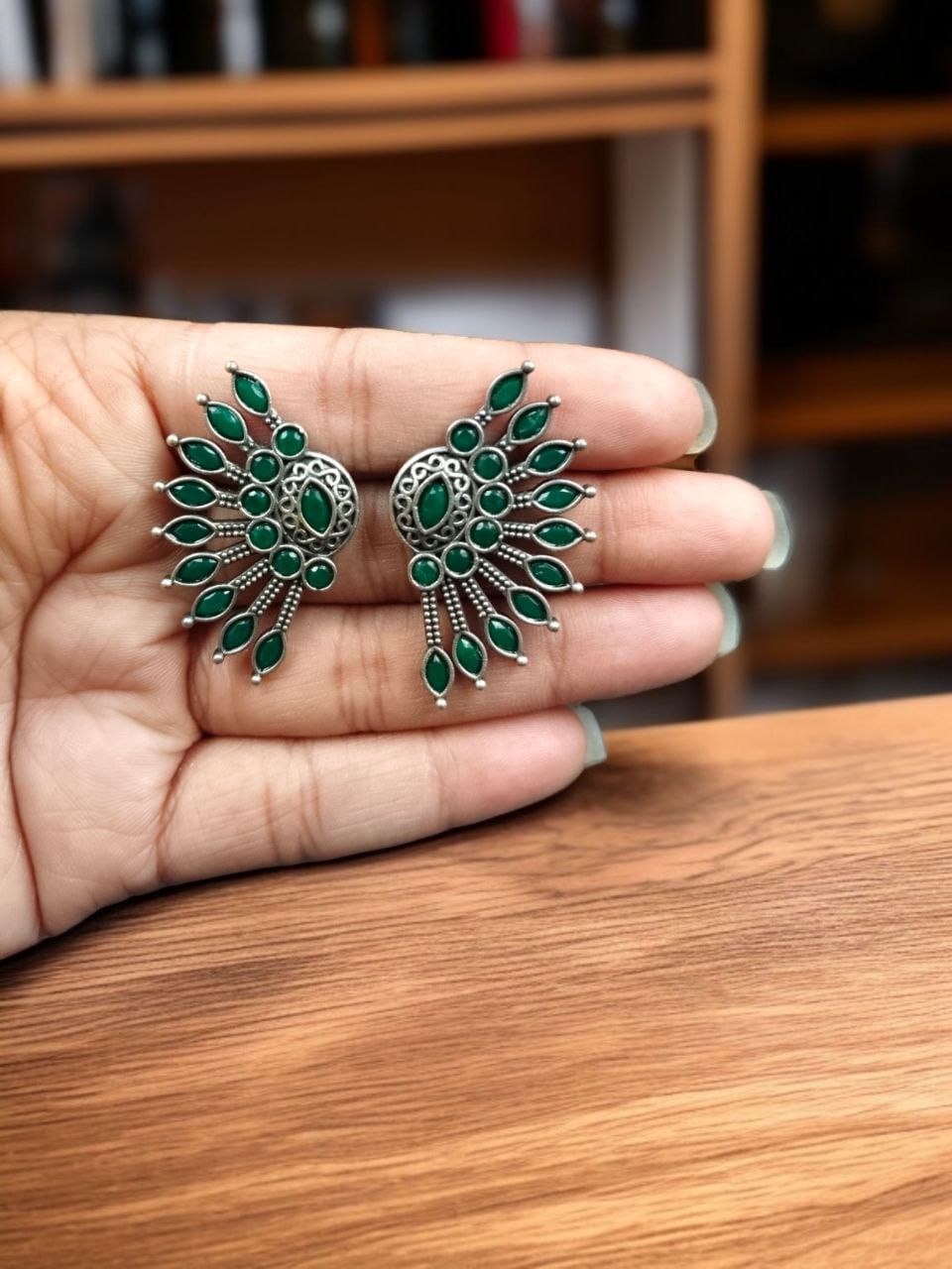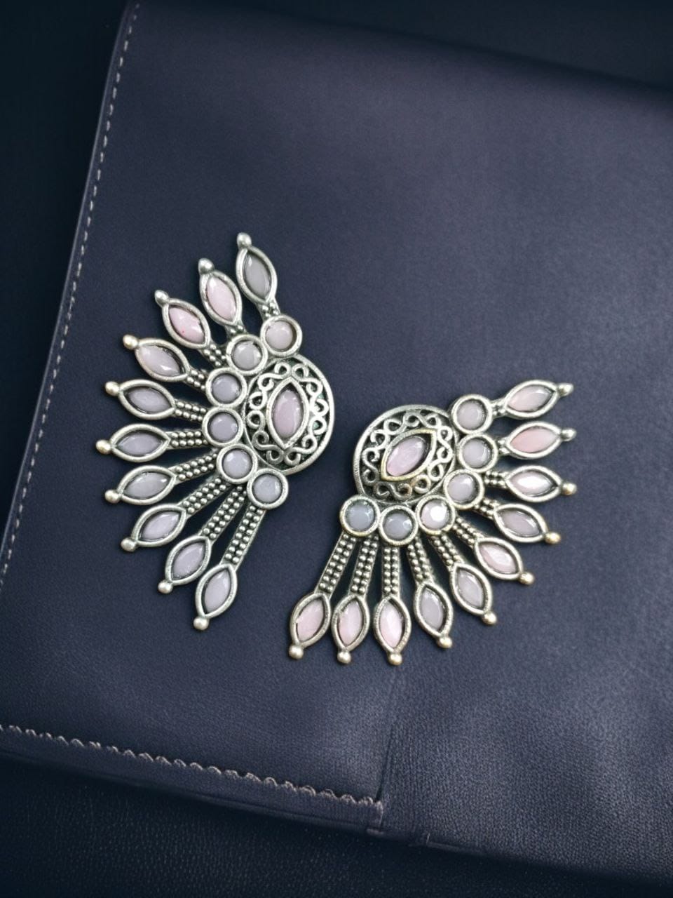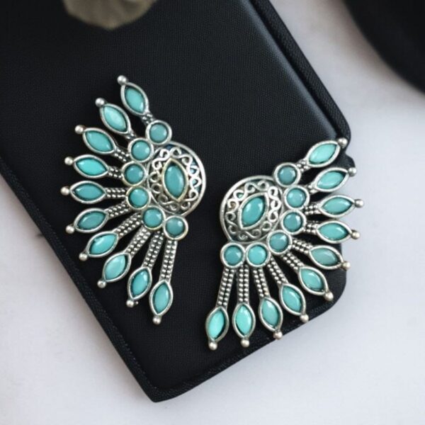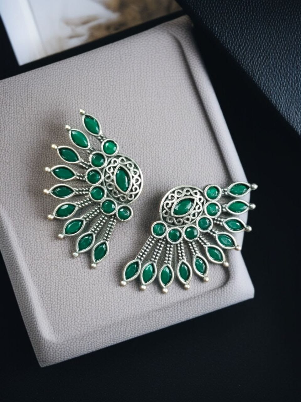 Elevate your jewelry collection with these Handcrafted Ancient Feather Style Feather Style Earrings, a perfect blend of vintage charm and modern elegance. Designed with intricate silver replica wings, these earrings capture the essence of timeless beauty while adding a touch of sophistication to your outfit. Whether you’re dressing up for a special occasion or seeking a statement piece for everyday wear, these stone-studded feather earrings are a must-have accessory.