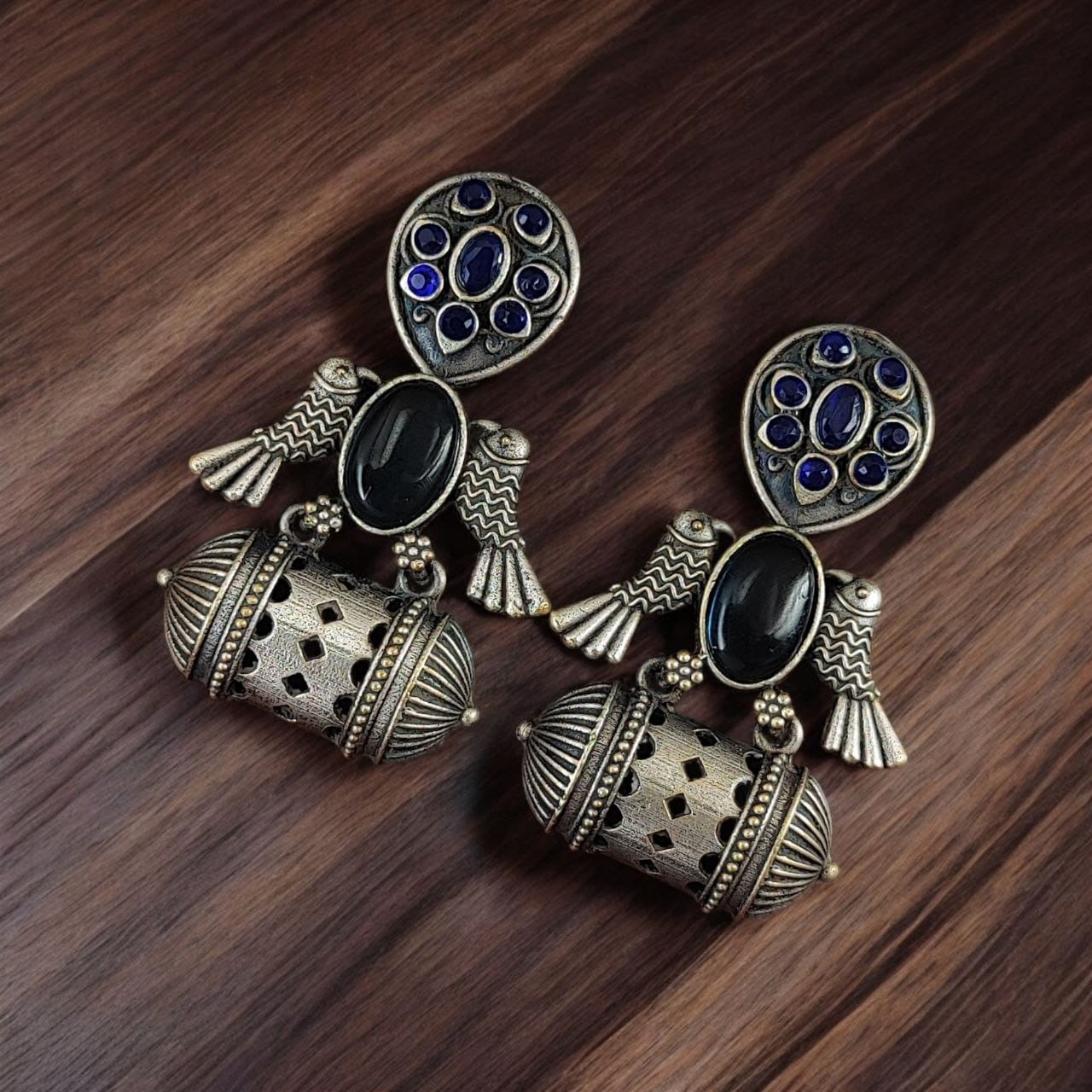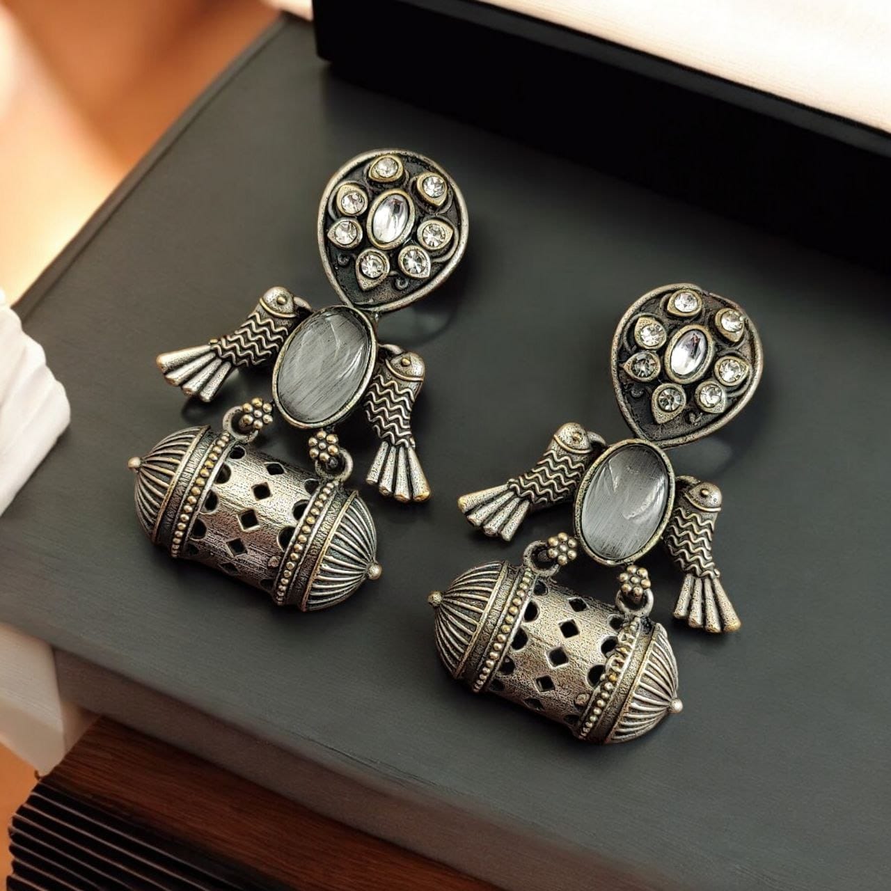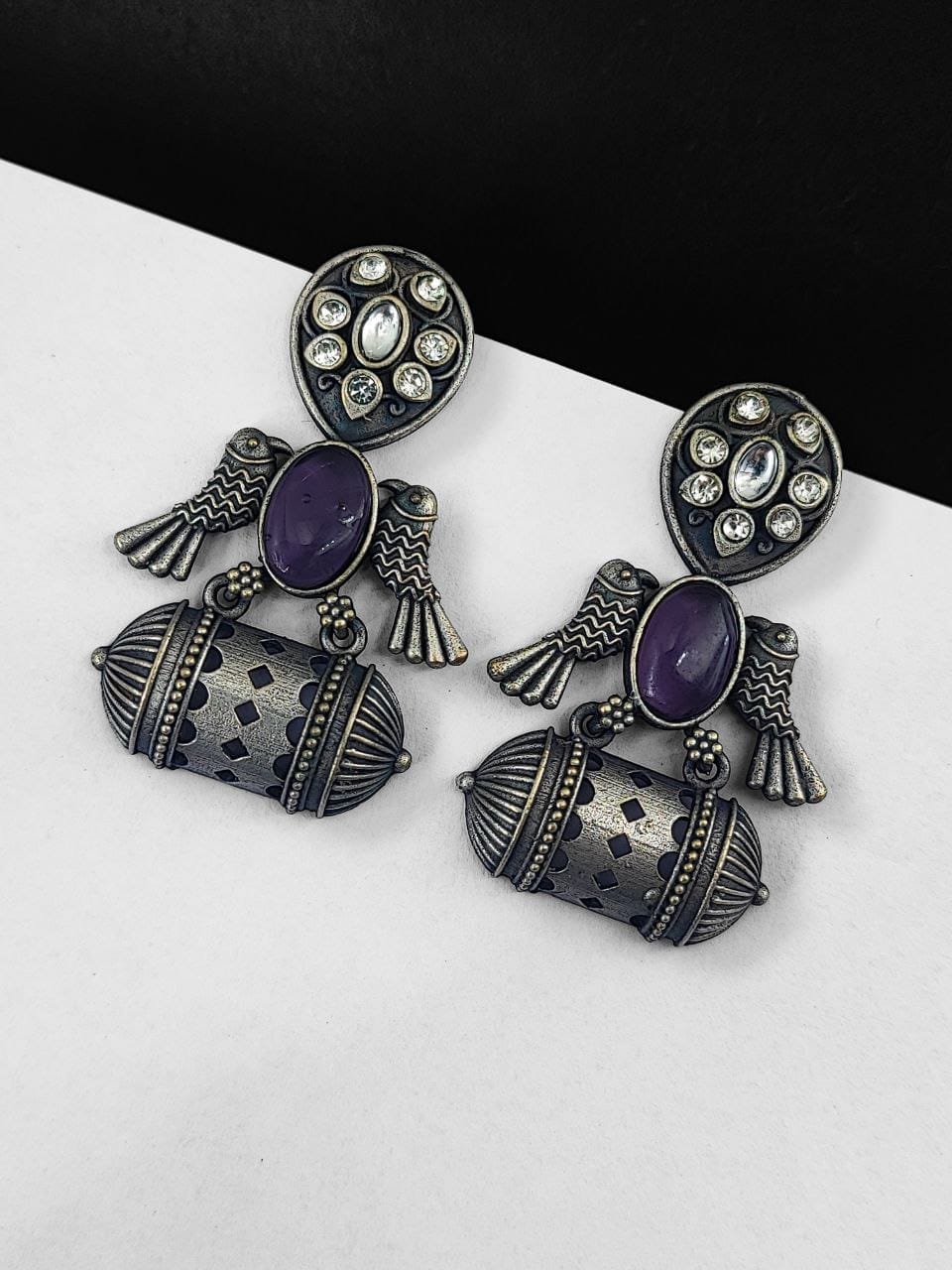 - Antique Silver Finish: The earrings feature an antique silver polish that gives them a vintage, regal look.