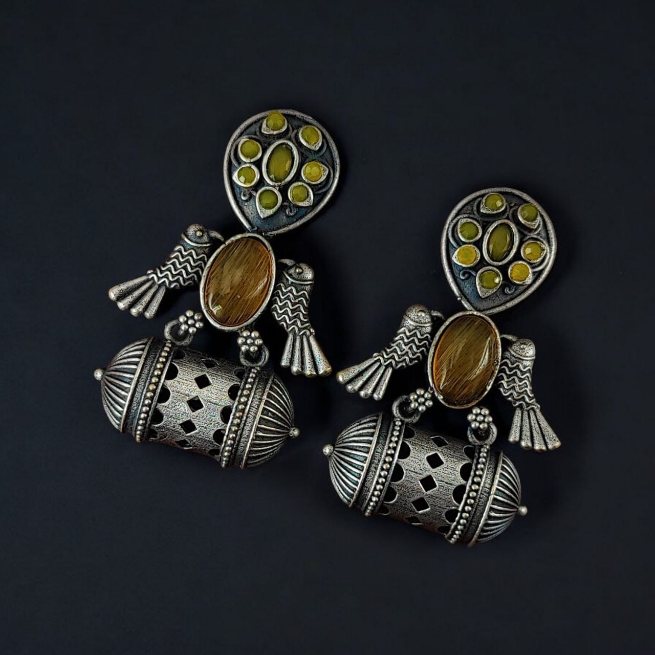 Add a touch of tradition and elegance to your jewelry collection with these Handcrafted Antique Silver Bird Jhumkis. Shop now to experience the beauty of timeless craftsmanship.
