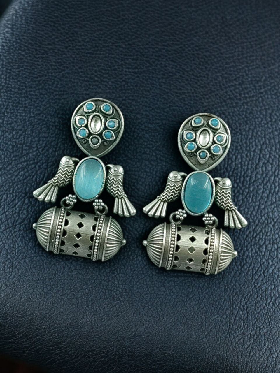 Embrace the charm of timeless elegance with our Handcrafted Antique Silver Bird Jhumkis, designed for those who appreciate the beauty of traditional Indian craftsmanship. These exquisite earrings showcase a unique blend of intricate artistry and cultural heritage, making them a must-have accessory for any jewelry lover.