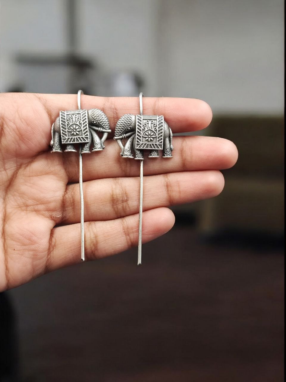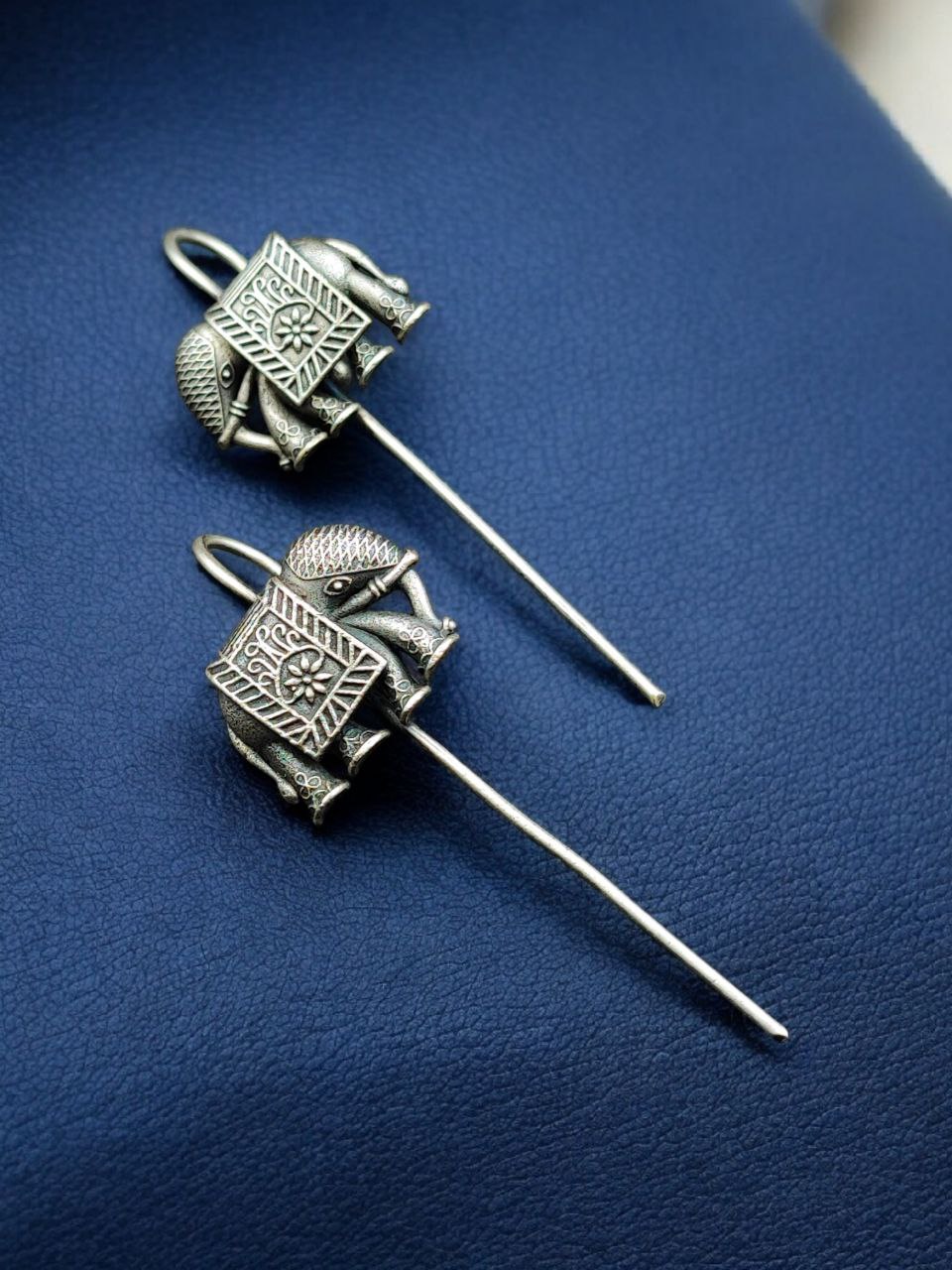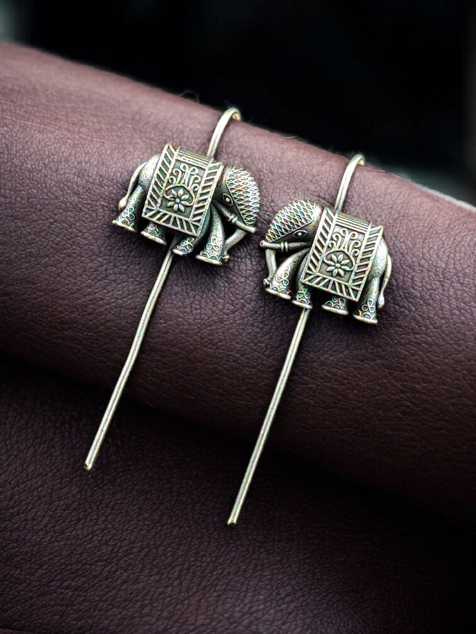 The earcuff features a finely detailed elephant motif, a symbol of strength, wisdom, good luck, and prosperity in Indian culture. Carefully handcrafted to highlight delicate curves and textures, the design reflects ethnic elegance while remaining subtle enough for regular use. The oxidized silver look enhances the detailing, giving the earcuff a rich antique appearance similar to real silver jewelry.