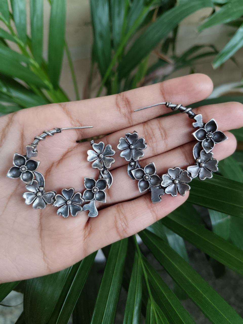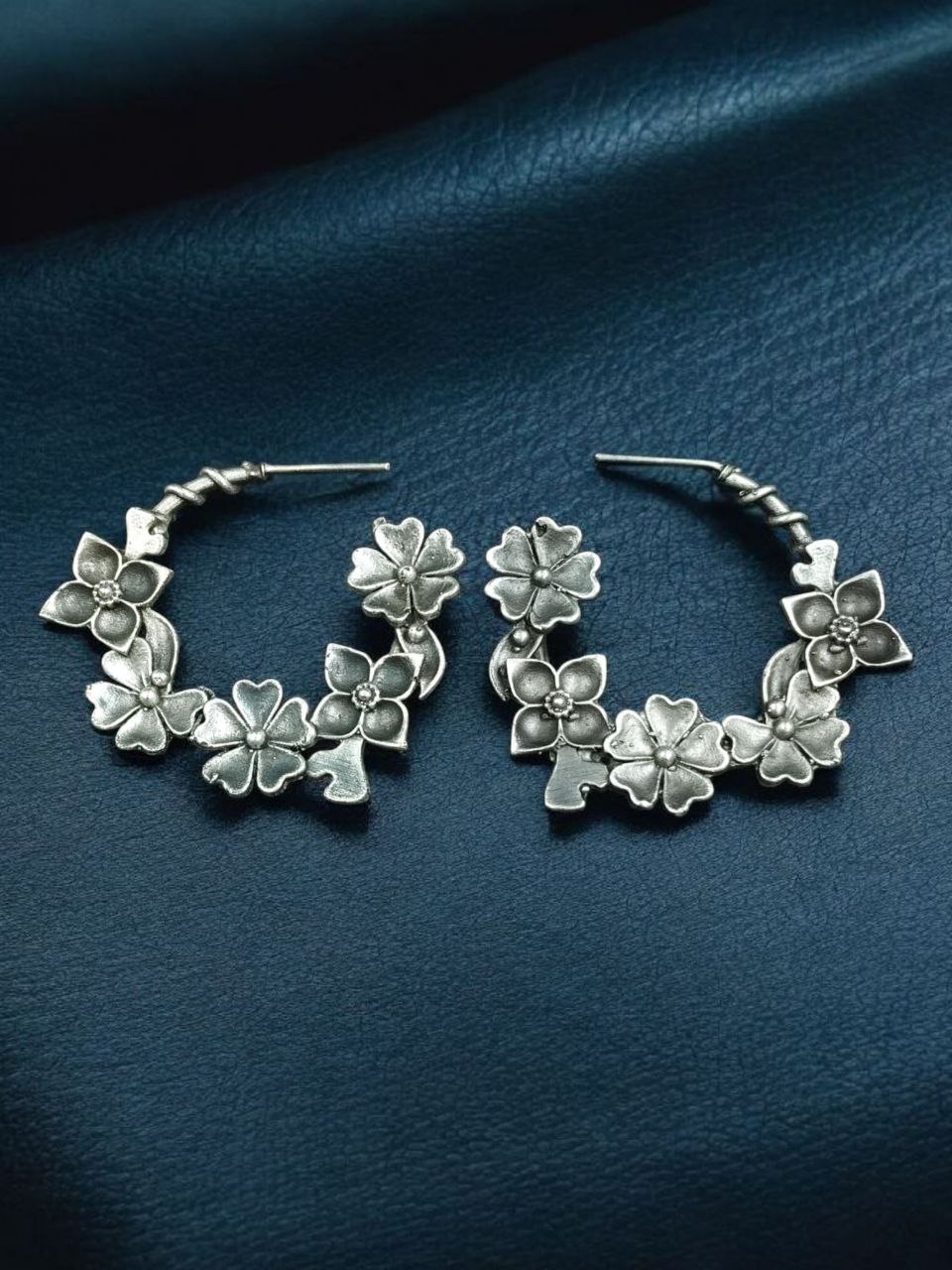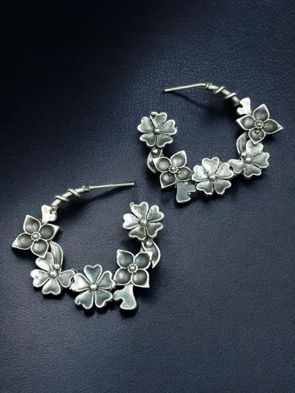 The oxidized silver tone gives the earrings a rustic, antique feel that makes them stand out without being too bold. They are designed for long-term wear and are skin-friendly, making them suitable even for sensitive ears. Whether you’re heading to a day event or a casual evening outing, these Flower Design Earrings offer the perfect finishing touch that brings elegance without overpowering your look.