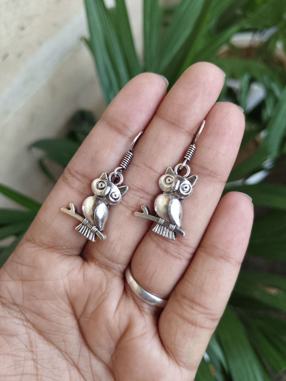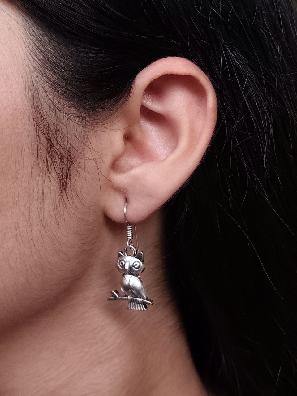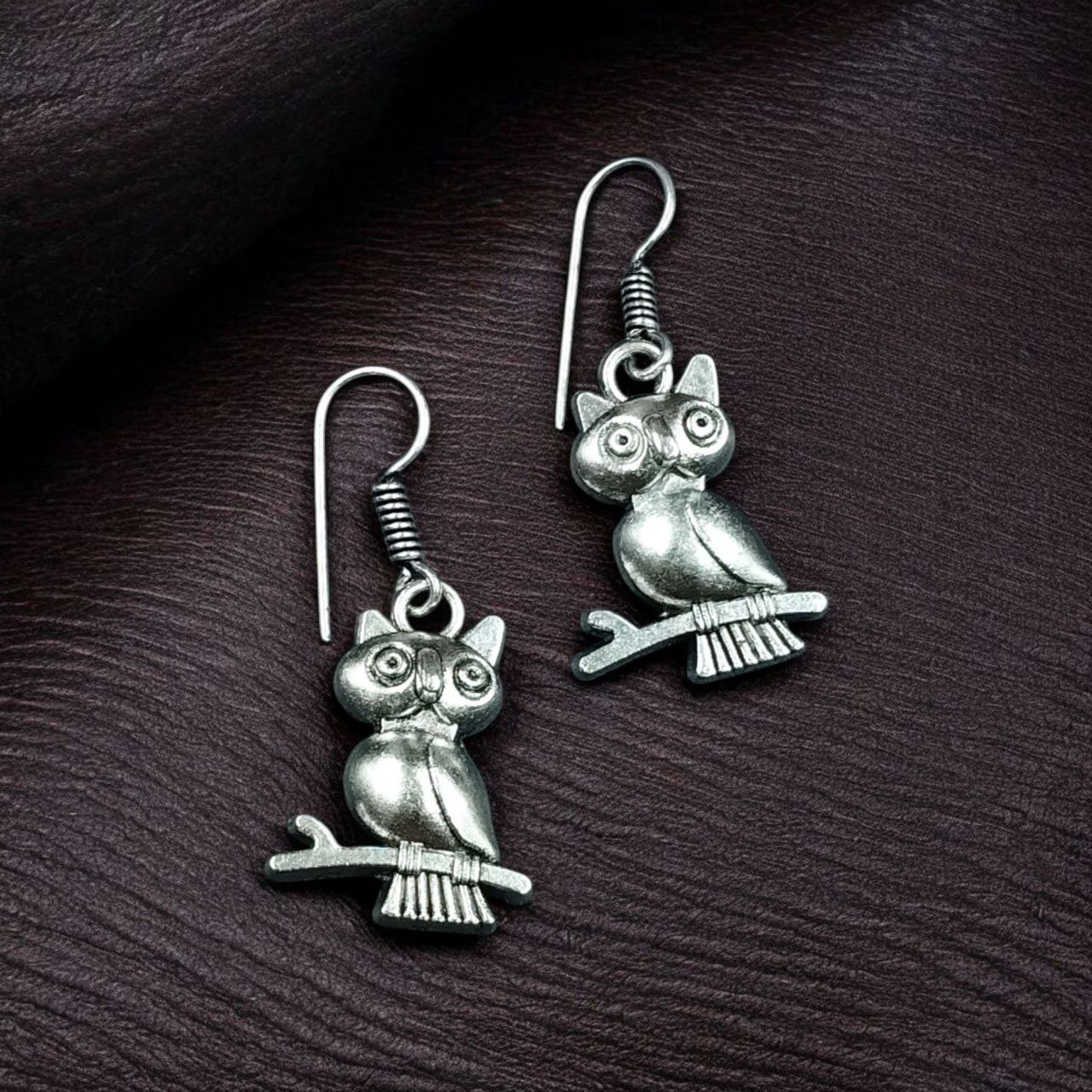 Add a touch of charm and elegance to your look with these Handcrafted German Silver Owl Earrings, designed with a vintage appeal that never goes out of style. Perfectly detailed, these hook dangler earrings capture the mystical essence of the owl ? a symbol of wisdom, mystery, and grace ? making them a truly meaningful accessory for women and girls alike.