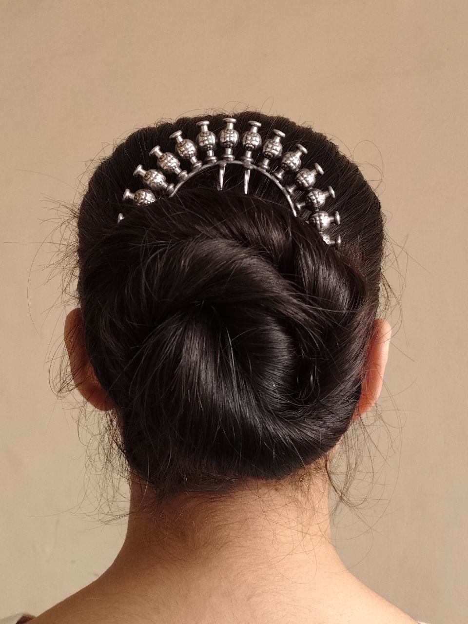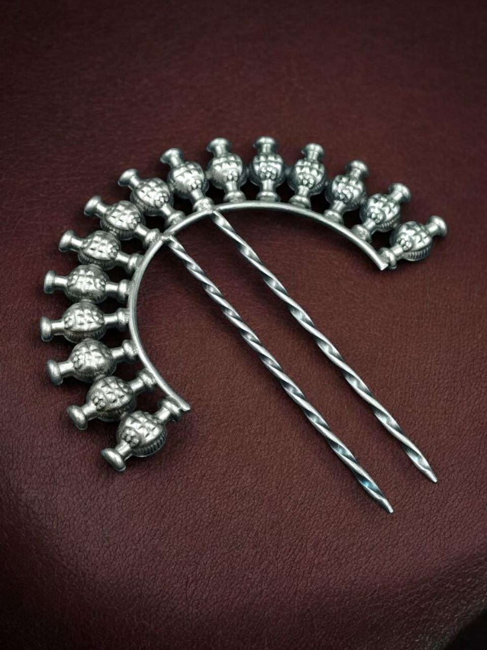 Enhance your hairstyle with a touch of traditional elegance and artistic charm with this Handcrafted Oxidized Juda Pin, designed as a beautiful silver replica unique hair accessory for women who value style, culture, and craftsmanship. Whether you?re styling a simple bun for everyday wear or creating an elaborate look for festive occasions, this juda pin adds instant beauty and sophistication to your hair.