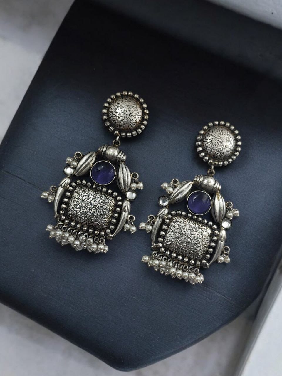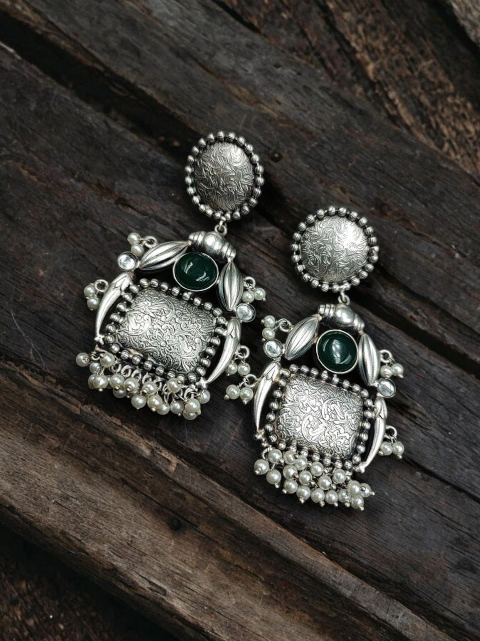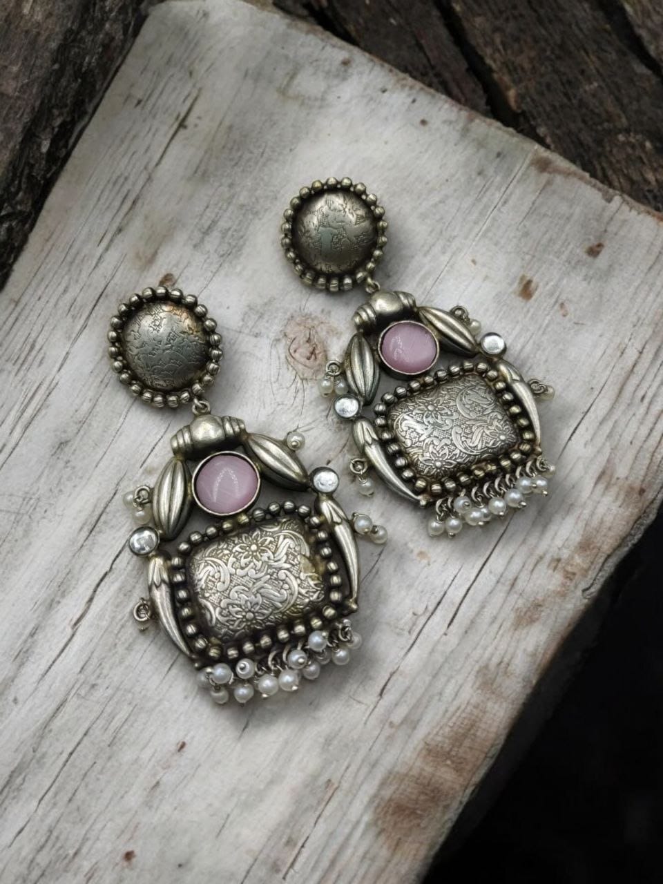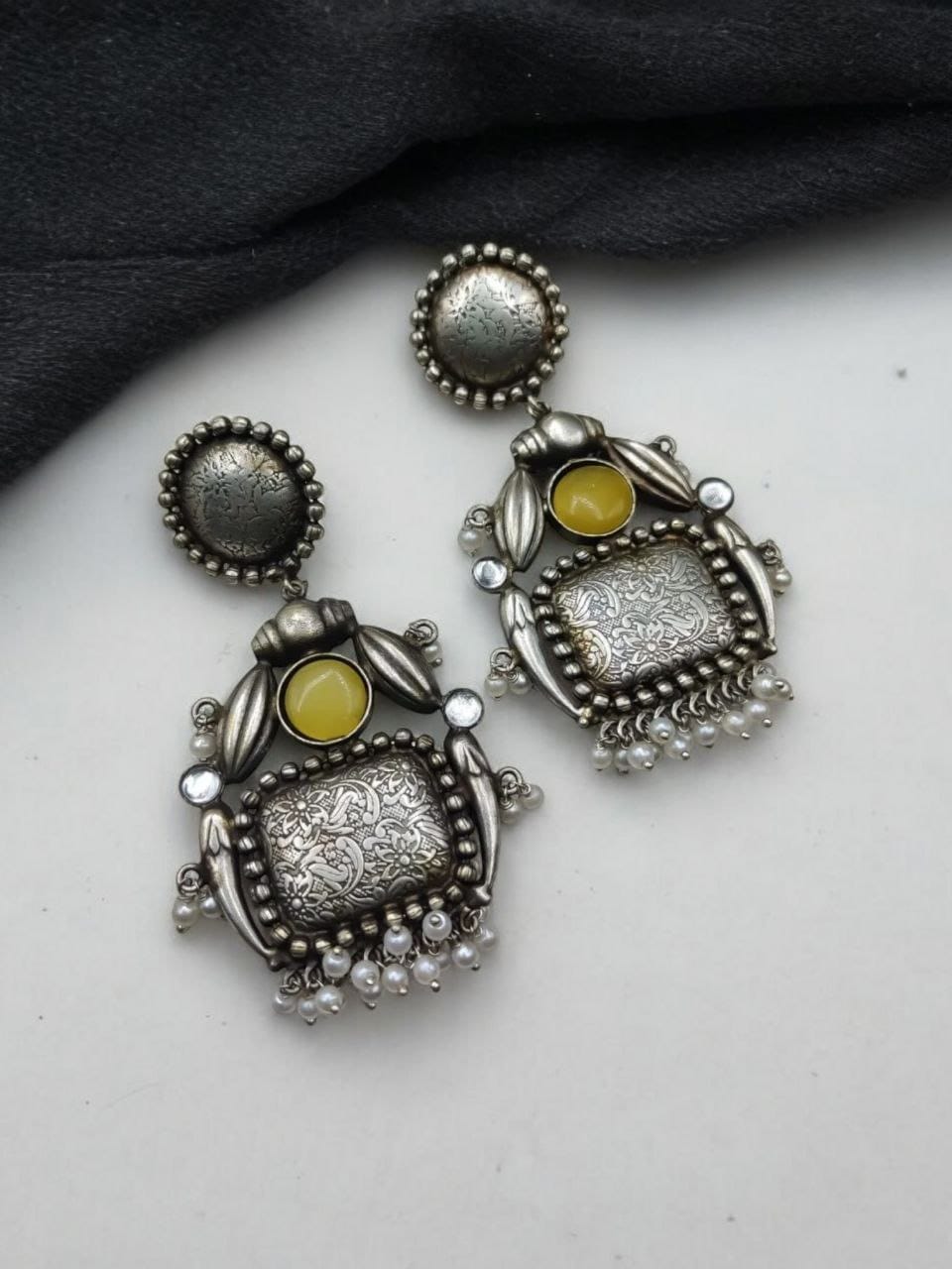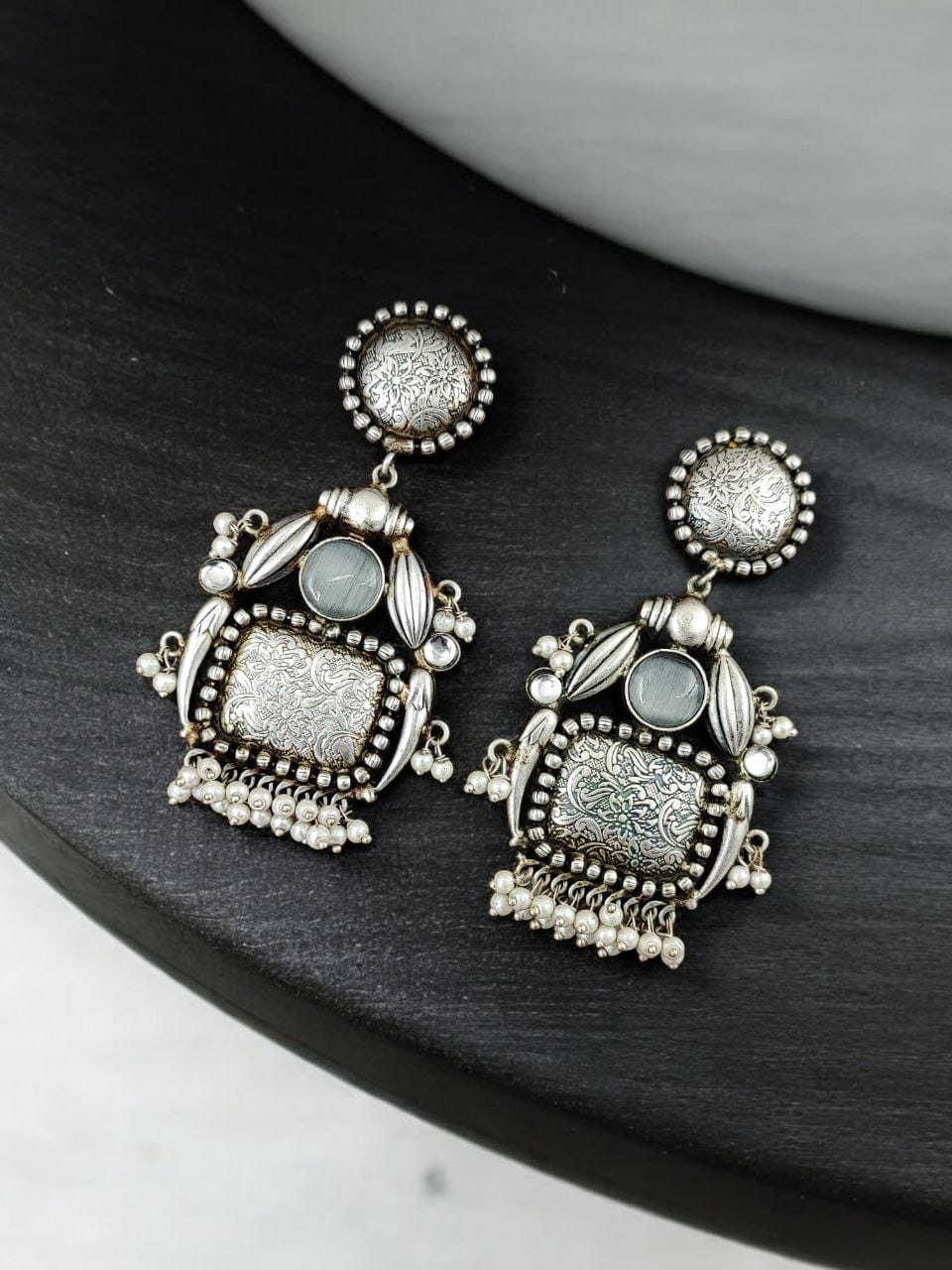Introducing our exquisite Handmade Earrings Silver Replica Monalisa Stone Stud with Pearl Work, a stunning fusion of traditional craftsmanship and modern elegance. Designed for those who appreciate unique, handcrafted jewelry, these earrings are meticulously created to bring out the best of both worlds ? the timeless beauty of silver replica jewelry and the radiant charm of Monalisa stones.