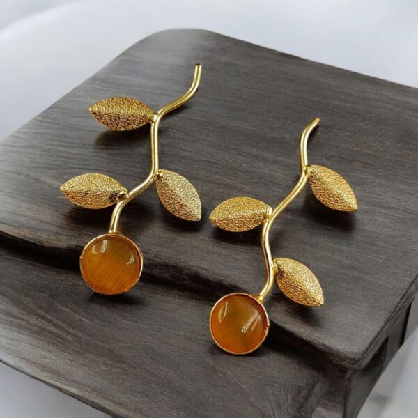 The earrings are coated with a high-quality gold-plated finish, providing a radiant shine that enhances any outfit. The premium plating ensures a luxurious look while being durable and resistant to tarnish. The warm gold tone complements various skin tones, adding a rich and vibrant touch to the overall design. The lightweight nature of the earrings makes them comfortable to wear throughout the day, without compromising on style or sophistication.
