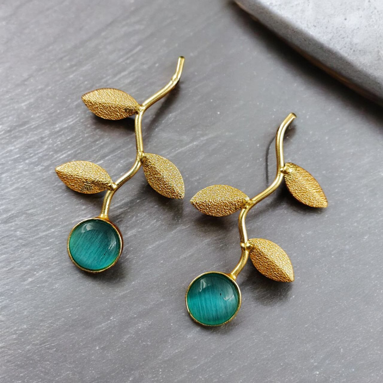 To maintain the shine and quality of these handmade gold-plated earrings, avoid exposing them to water or harsh chemicals. Store them in a dry place and wipe them gently with a soft cloth after wearing to preserve their brilliance and longevity.