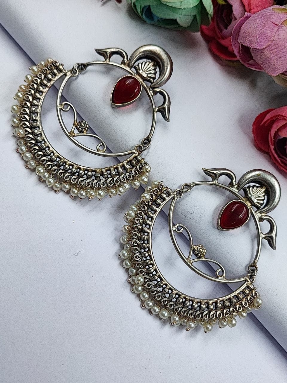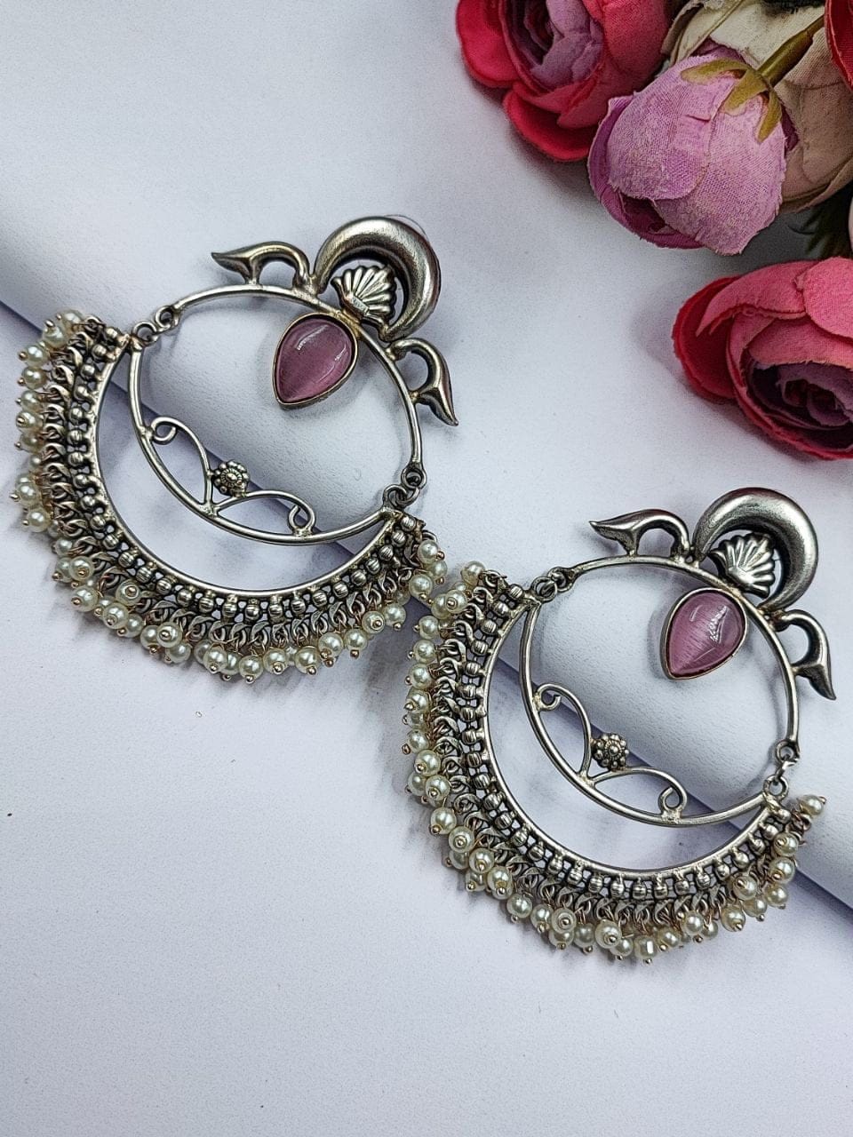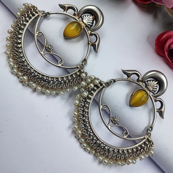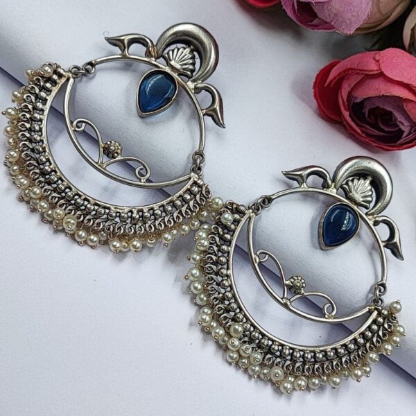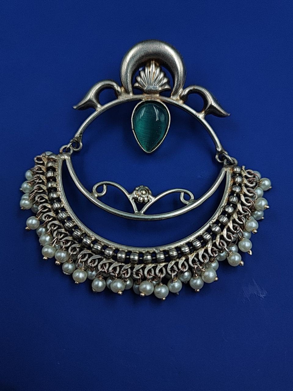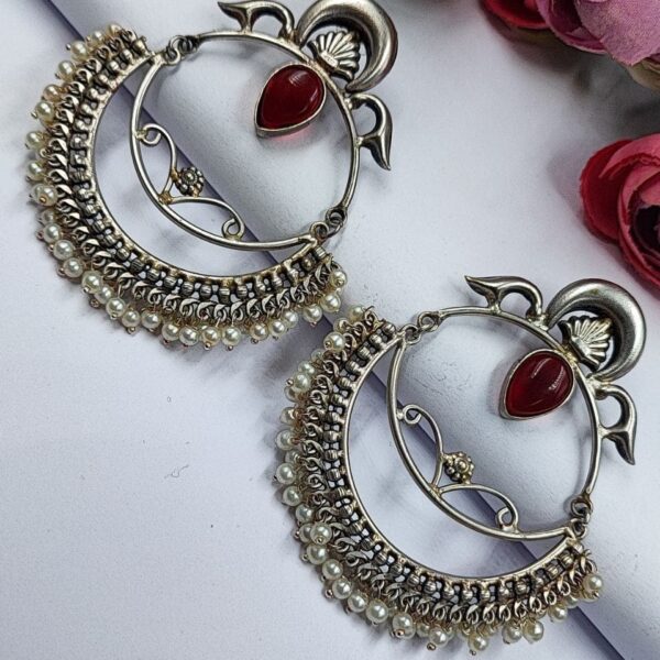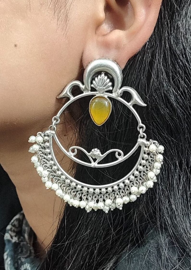 These earrings are a perfect choice for those who appreciate intricate designs, Chandbali-inspired motifs, and the timeless beauty of pearls. With their combination of silver craftsmanship, Handmade-inspired design, and delicate pearl accents, these earrings make a stunning addition to any jewelry collection.
