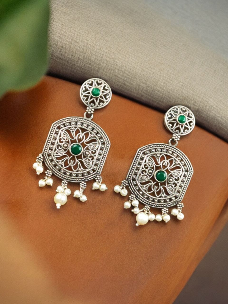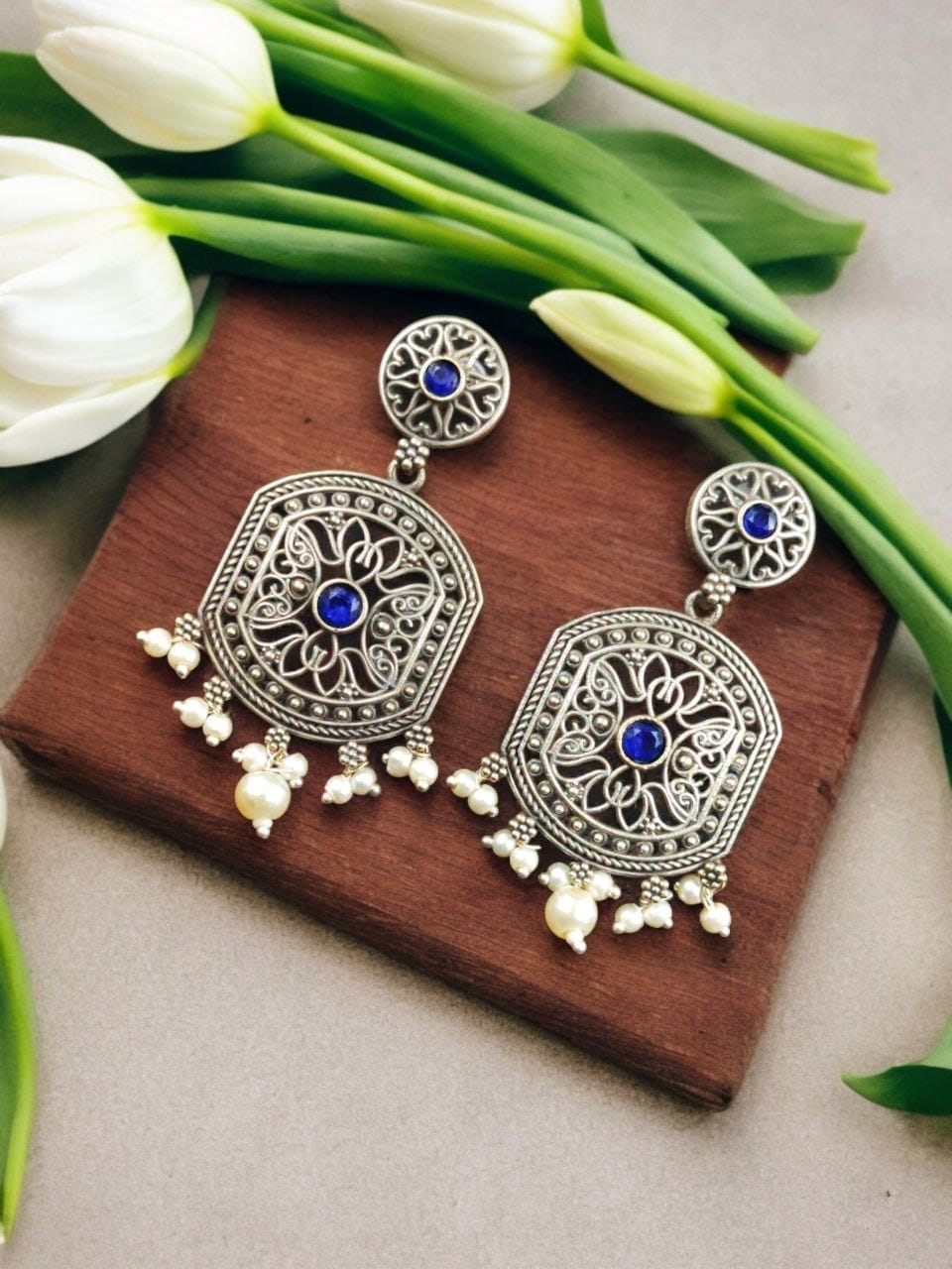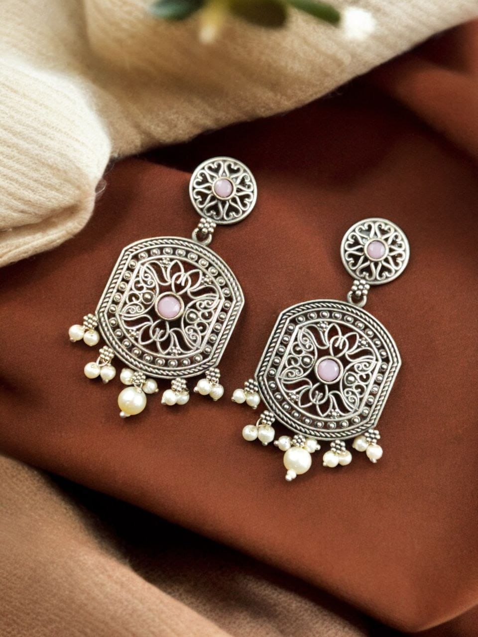 Indulge in the beauty of our High-Quality Silver Replica Dangler Earrings with Pearl Beads. Order now and experience the perfect blend of luxury, craftsmanship, and style.