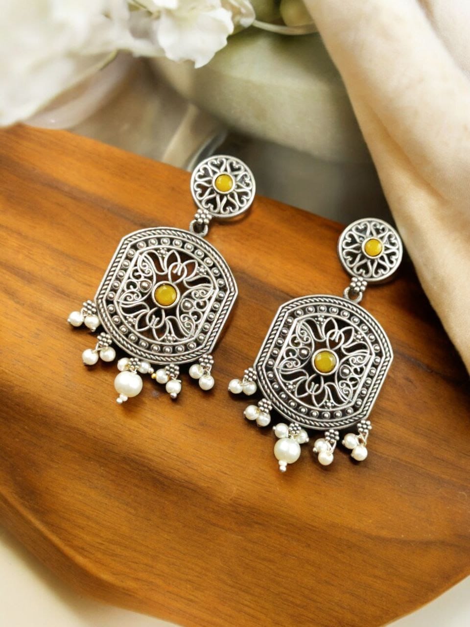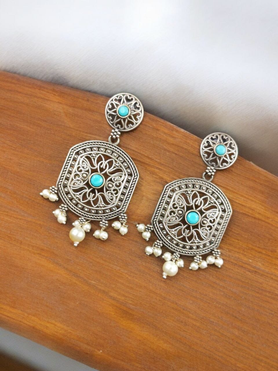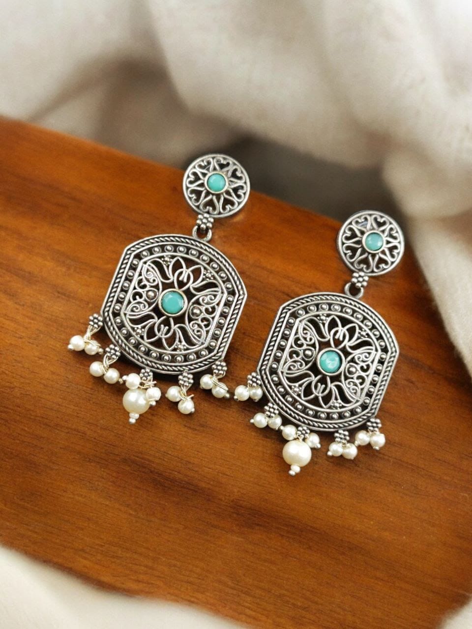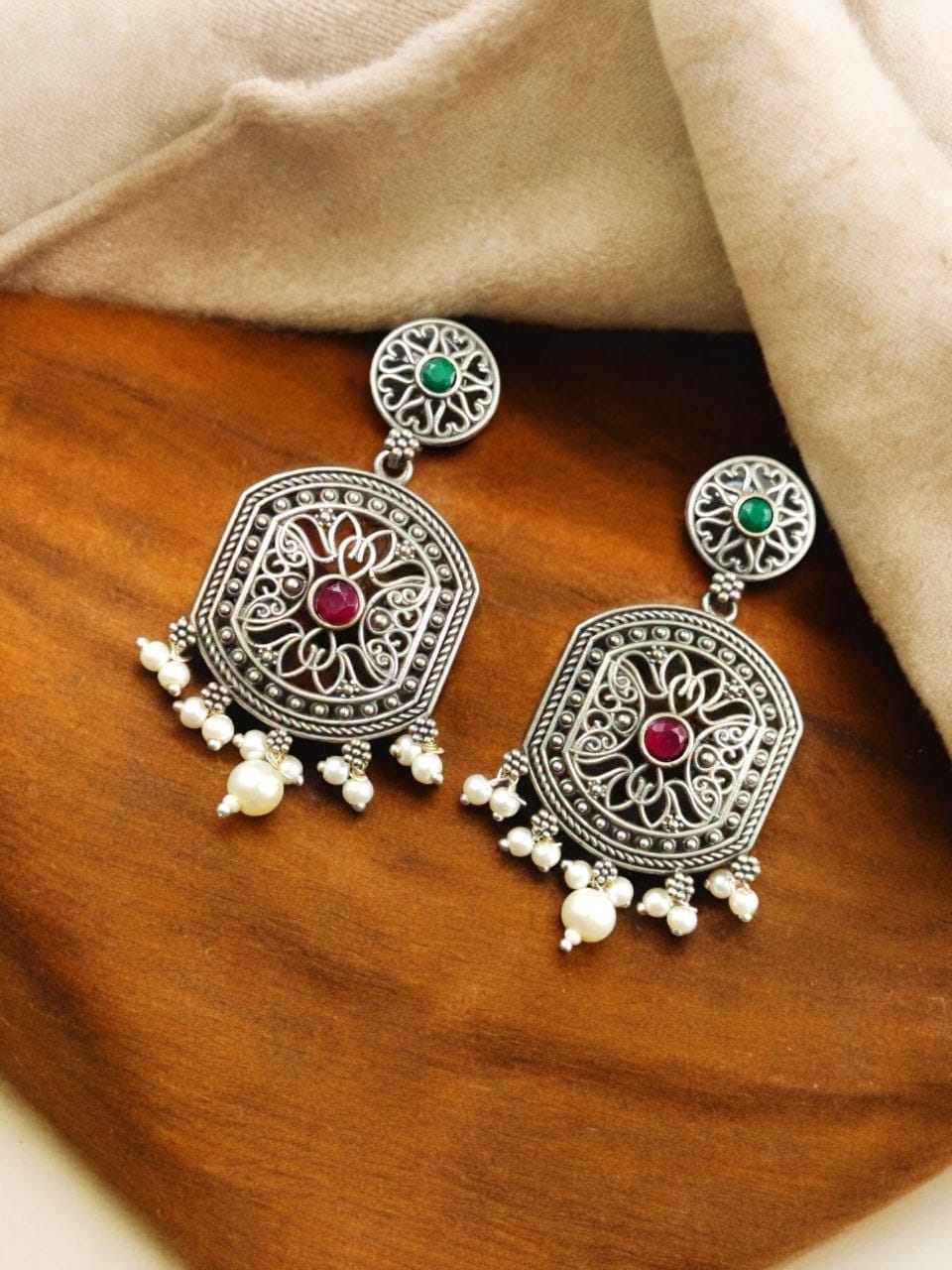 Indulge in the beauty of our High-Quality Silver Replica Dangler Earrings with Pearl Beads. Order now and experience the perfect blend of luxury, craftsmanship, and style.