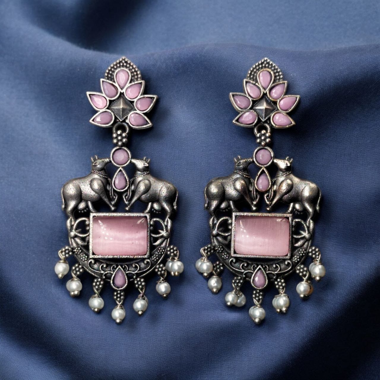 These earrings are not just a style statement; they are a reflection of craftsmanship and heritage. The oxidized silver touch lends the earrings an antique look, which is ideal for those who love vintage-inspired jewelry with a contemporary twist. The Monalisa stone embellishments provide a pop of color and elegance, ensuring that these earrings will complement a wide variety of looks.