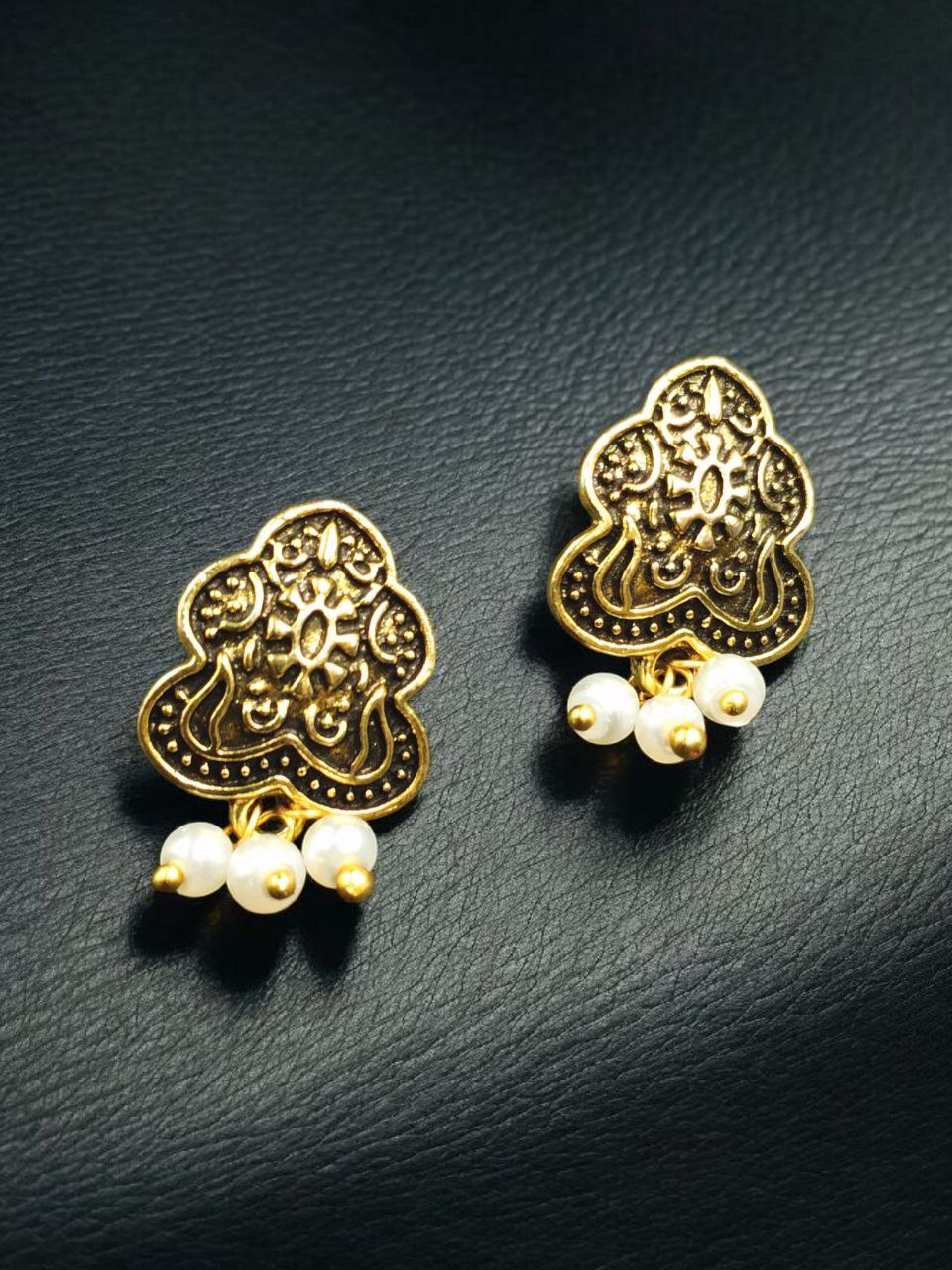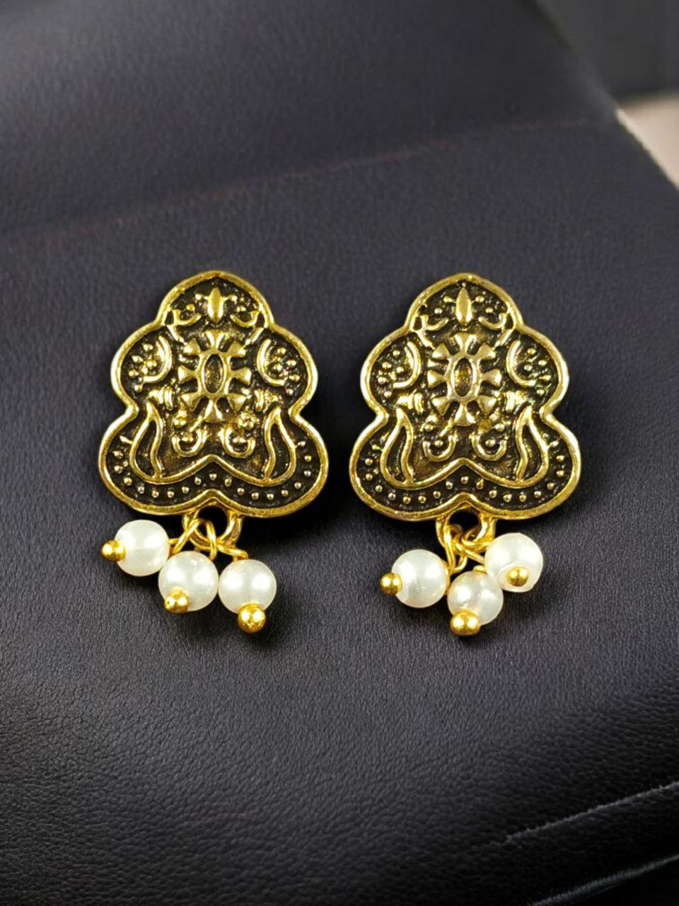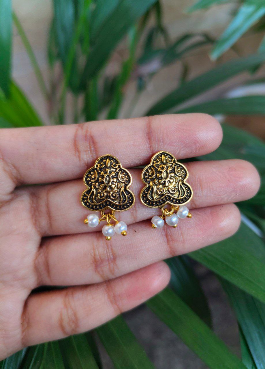 Each earring features a radiant pearl centerpiece, known for its natural luster and classic appeal. The smooth gold plating enhances its beauty, giving it a luxurious finish while maintaining a minimalistic design. Whether it?s for office wear, casual outings, or festive gatherings, these Stud Earrings are versatile enough to suit every occasion and outfit style.